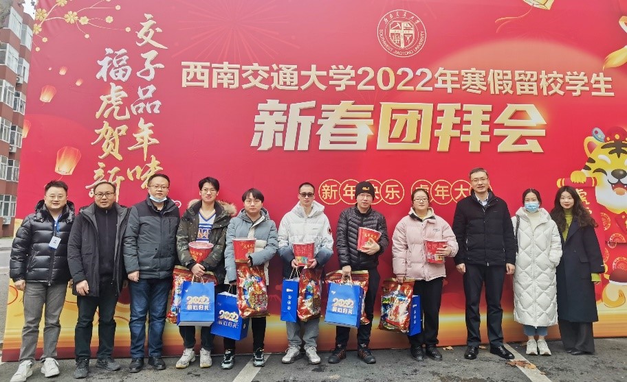 2022年1月28日下午,澳门十大信誉好的网站党委书记王斌、执行院长郭强、党委副书记杨宏毅以及辅导员陈建奇、薄慧、张先凌、任永昌老师一行代表学院看望寒假留校学生并向同学们发放慰问品。