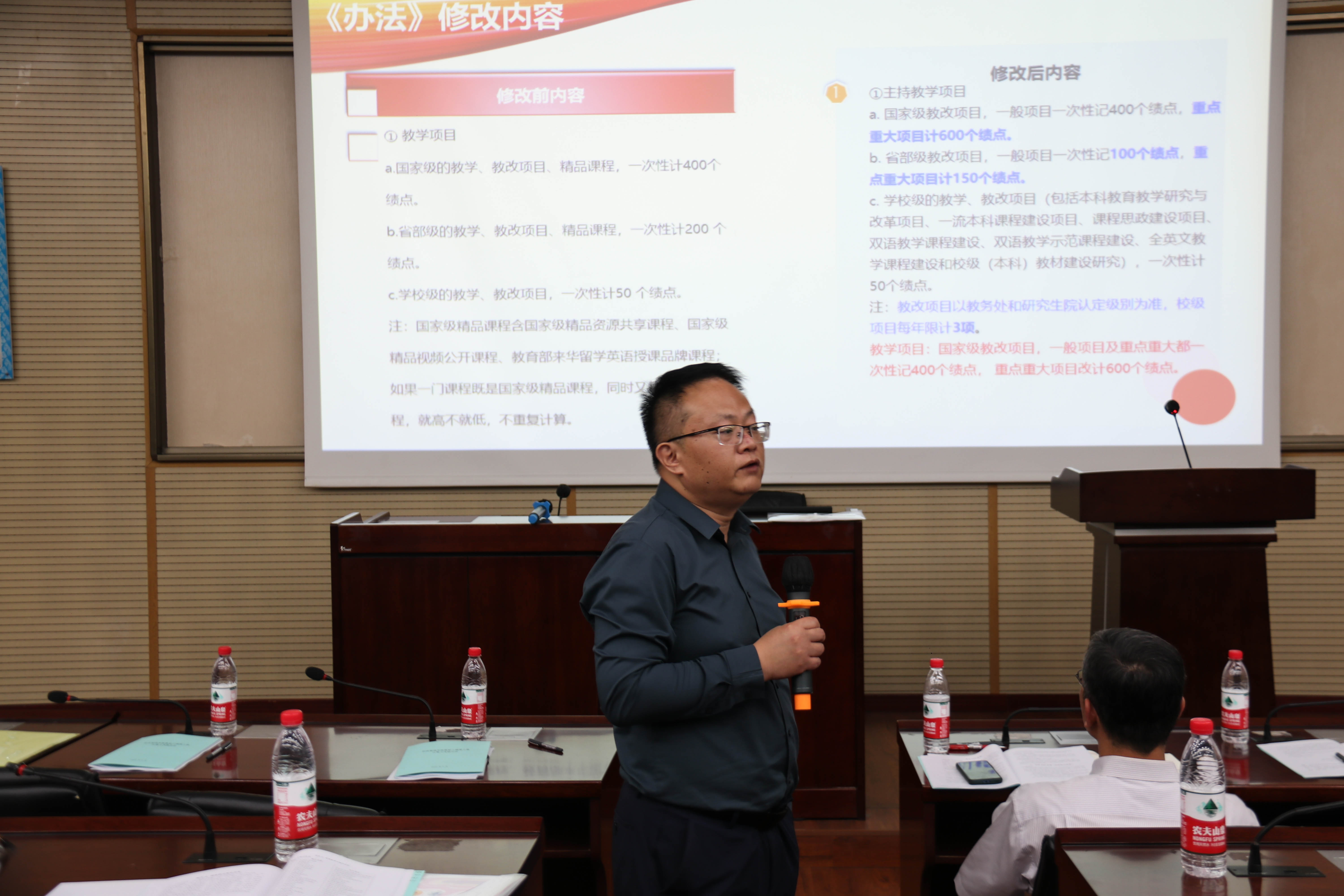 教职工绩效工资计算与考核办法的调整优化是事关学院建设发展和每一位教职工切身利益的大事,学院党政领导班子高度重视,在前期广泛征求教职工意见,并与部分教职工进行充分交流沟通的基础上,对2019年经学院教职工审定的《办法》进行了优化调整。学院执行院长郭强在本次“双代会”上从对《办法》优化调整的背景、总体原则、重点调整内容等几个方面,向代表们作了详细的说明和报告。