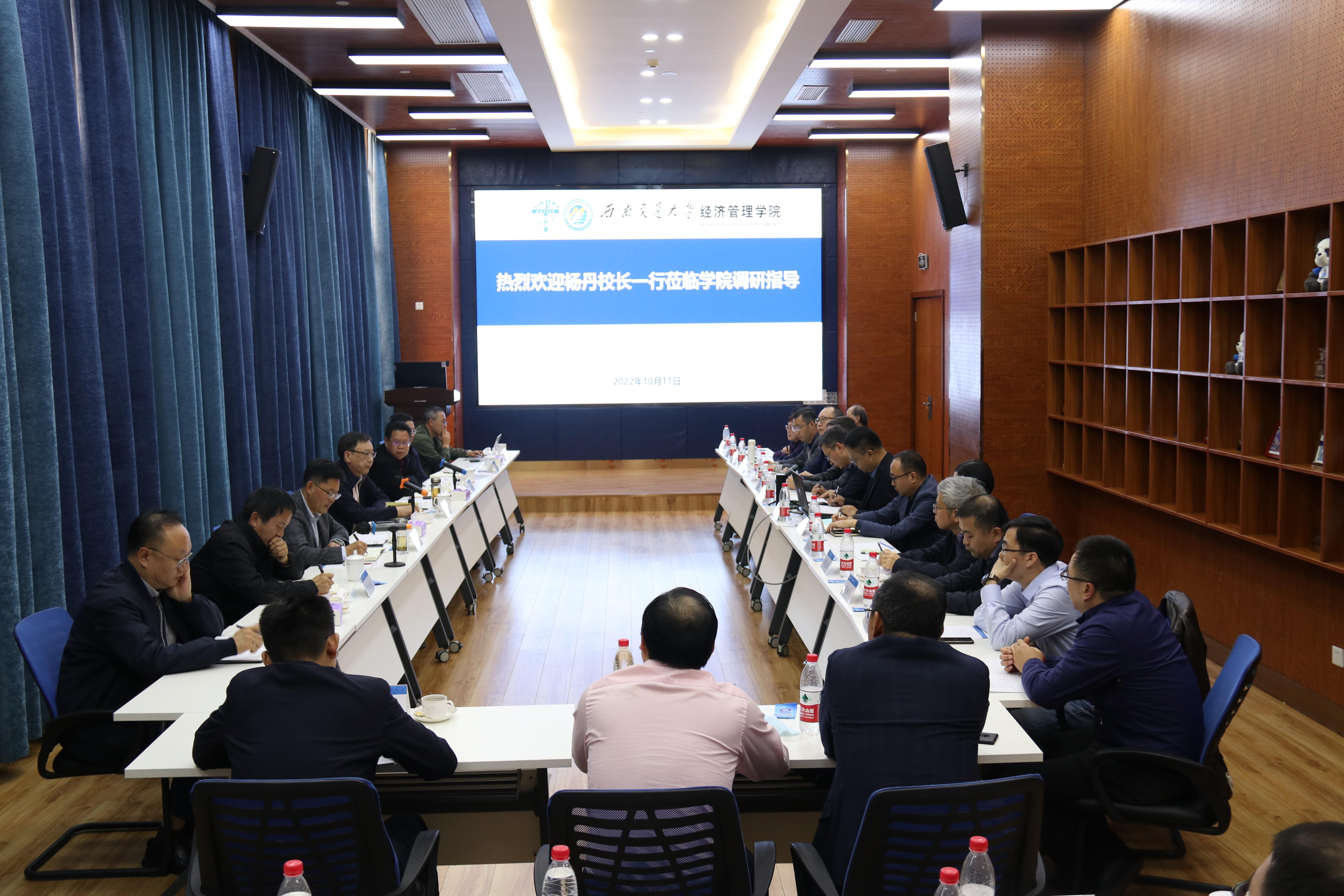 最后,杨丹作总结讲话。他表示,管理科学与工程、工商管理两个一级学科历史悠久、基础扎实,是学校建设高水平研究型大学的生力军,经管学院的学科不仅是学校多学科协调发展的重要组成部分,也是学校交通特色、理工优势的重要支撑。杨丹对学院今后工作提出建议:一是要紧密围绕学校建设“交通特色鲜明的高水平研究型大学”的目标,在坚定学科建设发展目标的基础上,进一步解放思想、开拓视野,通过纵向比较和横向比较,加强与国内外高水平商学院的合作,借力发展,特别是要围绕学科建设发展开展深入研讨、进行长远规划;二是要高度重视并系统解决学院发展中的结构性问题,进一步凝练学科发展方向,明确牵头学科、骨干学科和支撑学科,科学构建学科发展和人才培养之间的良性互动关系,依据学科建设规划布局人才培养工作;三是要更加精准、更加有力地推进人才队伍建设,人才引育工作要注重与学科重点发展方向、科研前沿热点和人才培养需要的高度契合,并进一步深入推进人才分类评价和分类管理改革,当前能改的尽快改,不能马上改的要研究形成系统解决方案,为人才引育做好支撑和保障,还应特别重视青年教师的引育工作,为青年教师的引进和成长搭好平台、做好服务,久久为功,常抓不懈,让青年人才出色出彩,持续释放创新能量。