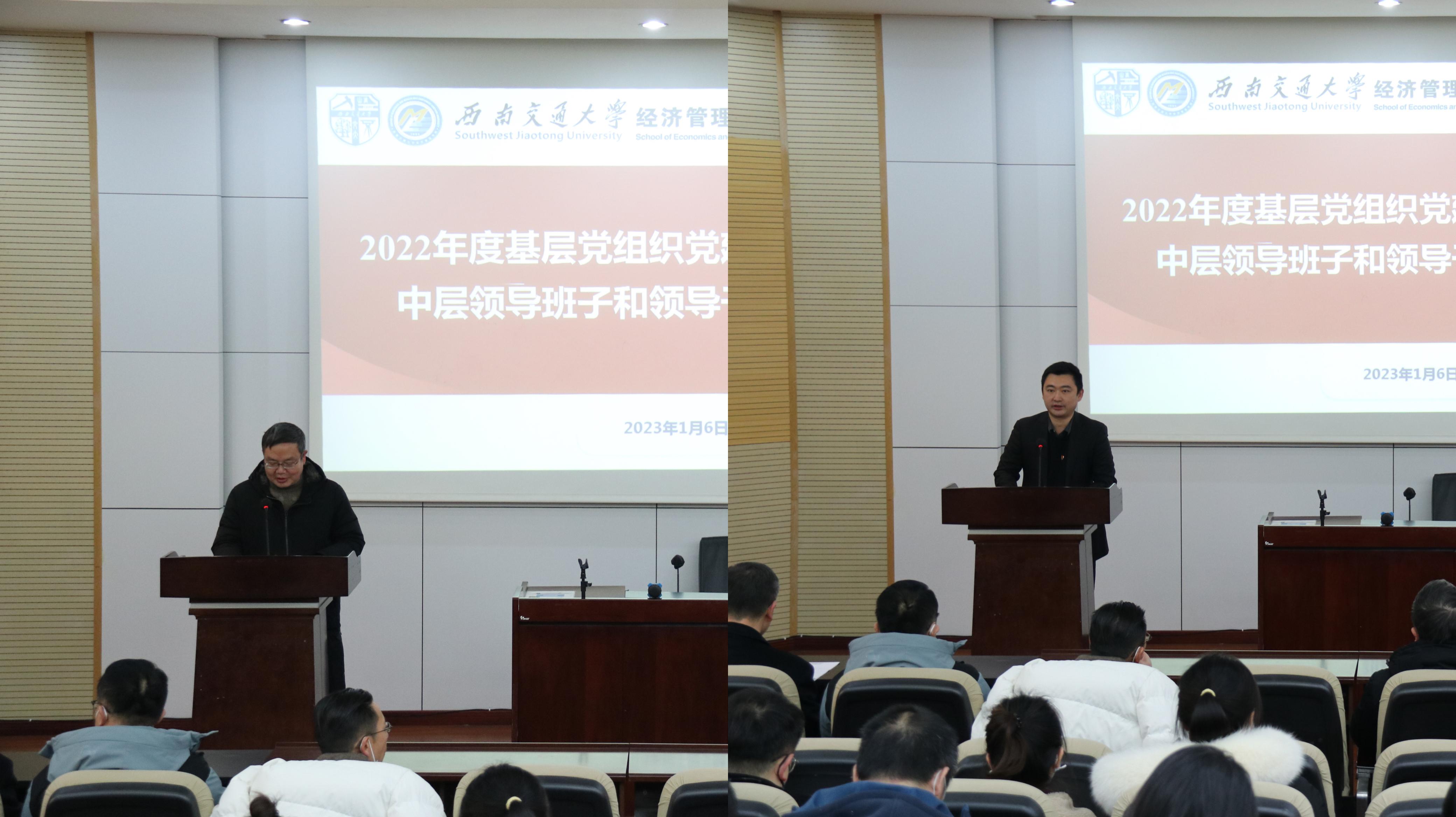 按照学校党委工作部署,2023年1月6日下午2:30,澳门十大信誉好的网站2022年度党建满意度测评暨中层领导班子和领导干部述职测评大会在九里校区0215教室召开。学院党政领导班子全体成员、学院教职工和学生党员代表参加测评,学校党委党校副校长燕莆龙同志列席会议,会议由学院党委书记王斌主持。