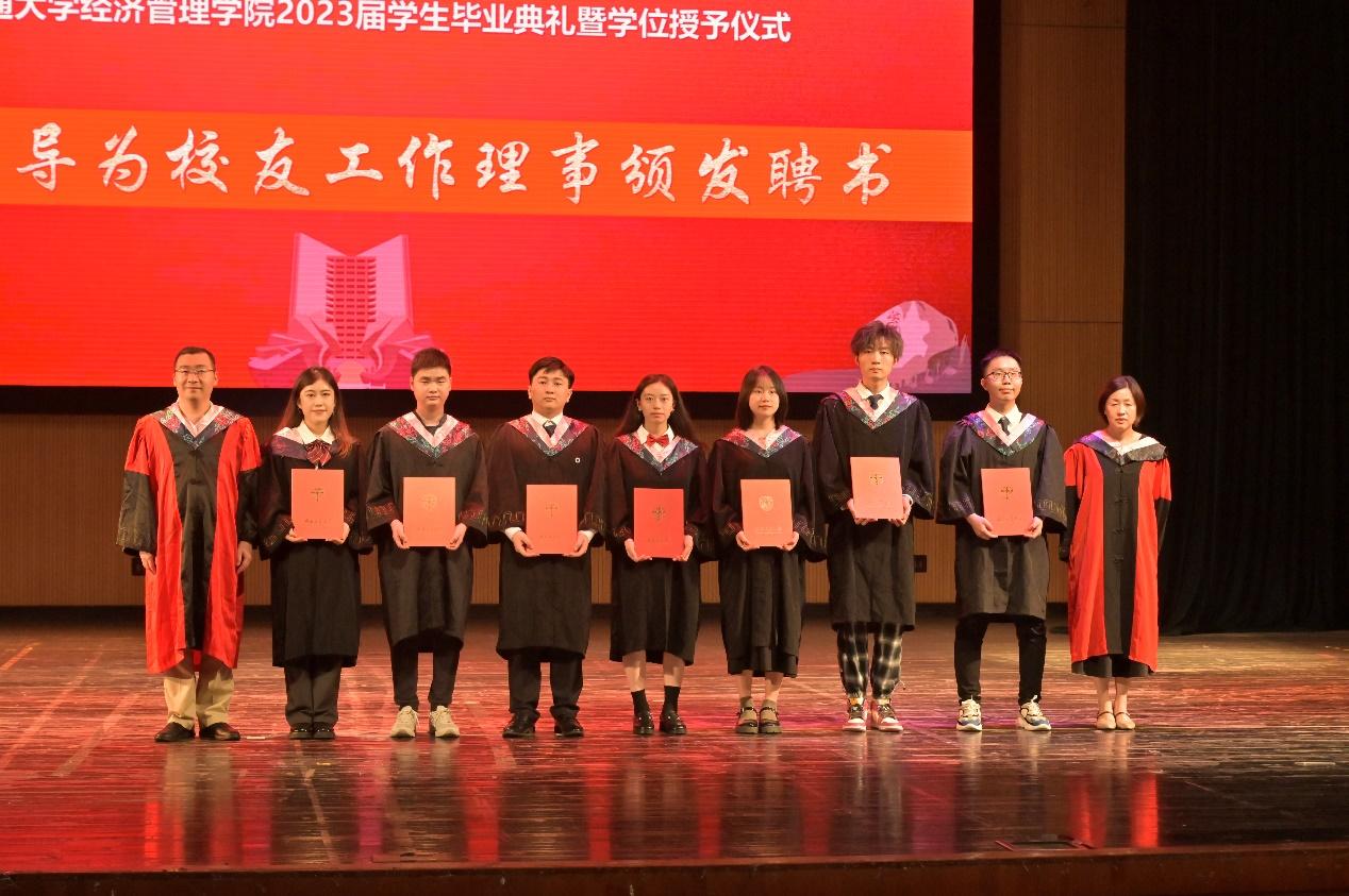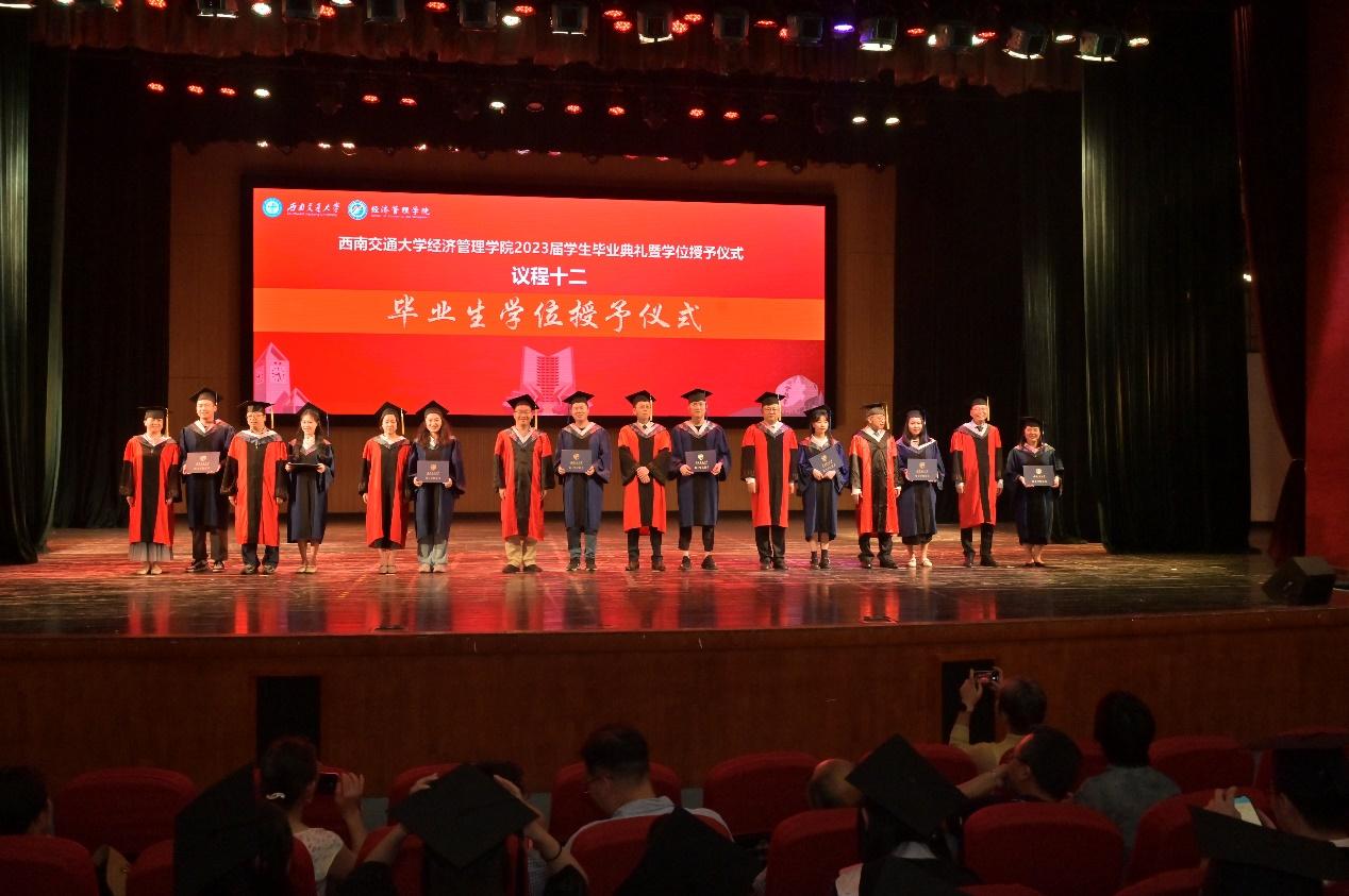 2023年6月17日下午,以“怀经管初心 华交大荣光”为主题的澳门十大信誉好的网站2023届学生毕业典礼暨学位授予仪式在九里校区大学生会堂隆重举行。学院全体领导班子成员、学院学位评定分委会委员、各系和职能部门负责人、专业负责人、教师代表、毕业生辅导员和班主任,及学院2023届全体毕业生出席本次典礼。本次典礼由学院党委副书记杨宏毅主持。