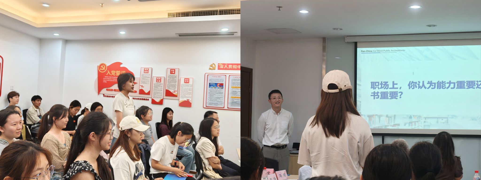 在经验分享环节,审计部合伙人李元良、项目经理王磊、部门经理刘佳鑫用活泼生动的语言,以不同职业阶段视角,分享了作为一名审计师的实战经验与成长心得,勾勒出清晰的职业发展路径。数据分析部负责人王子璇则聚焦行业数字化,解读泛资本市场与财会领域的革新方向。