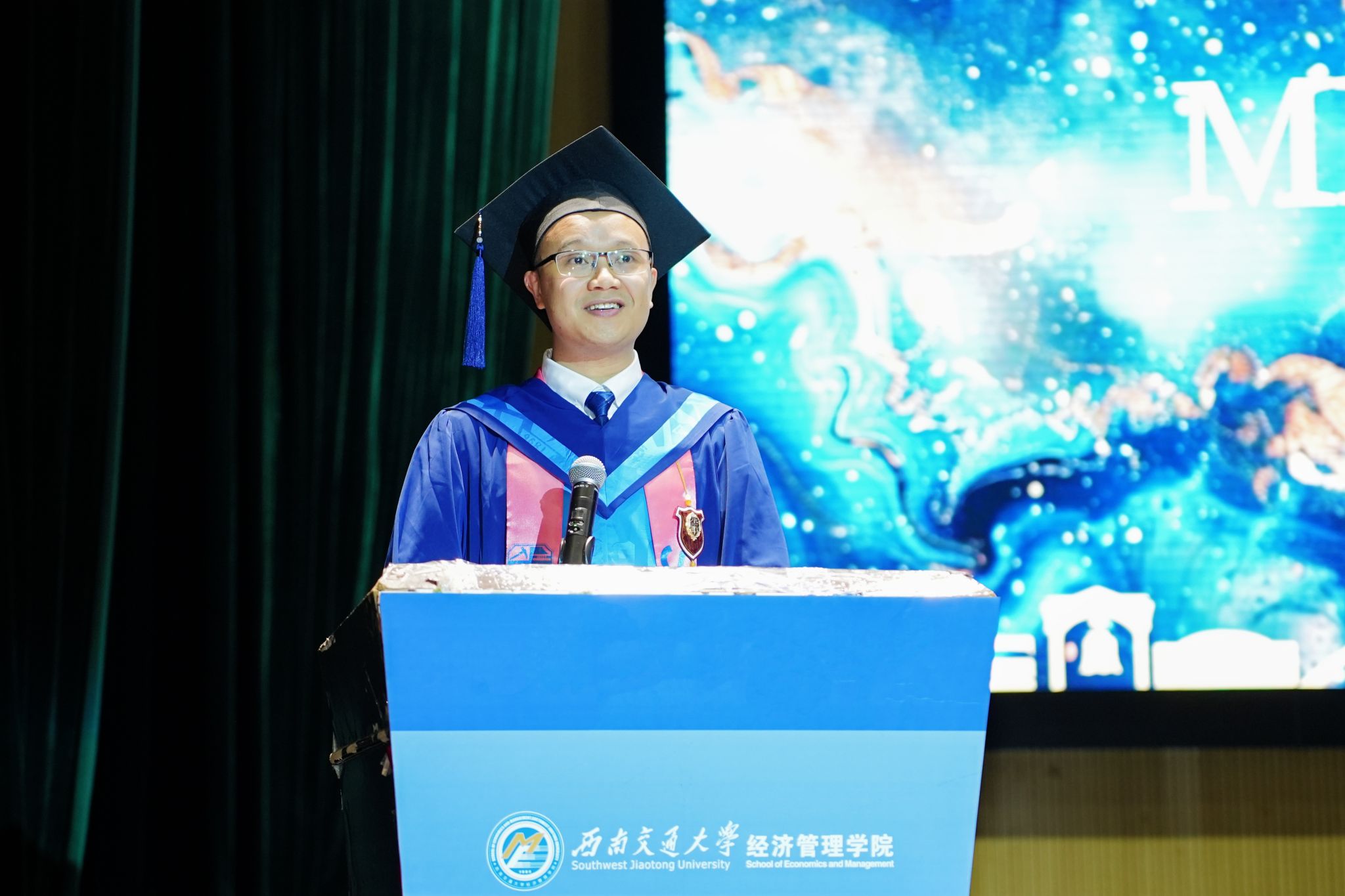 学院院长韩科为毕业典礼致辞。韩科代表澳门十大信誉好的网站全体师生,向圆满完成学业的毕业生们表示最热烈的祝贺,向辛勤耕耘的老师、默默关心的家长致以最崇高的敬意。韩科提到,毕业生是学院向上发展的见证者,每位经管人的成长都镌刻着 “竢实扬华,自强不息”的交大精神,体现出“格物致知,和合共进”的经管院训。临别之际,韩科用“三个希望”勉励全体毕业生:一是要坚守初心,勇担使命,将个人理想融入国家发展大局,始终以家国情怀诠释交大经管人的使命担当;二是要追求卓越,砥砺奋进,在专业领域深耕不辍,对待工作精益求精;三是要心怀感恩,回馈社会,铭记父母、师长、同窗的深厚情谊,在回馈社会的行动中实现人生价值。