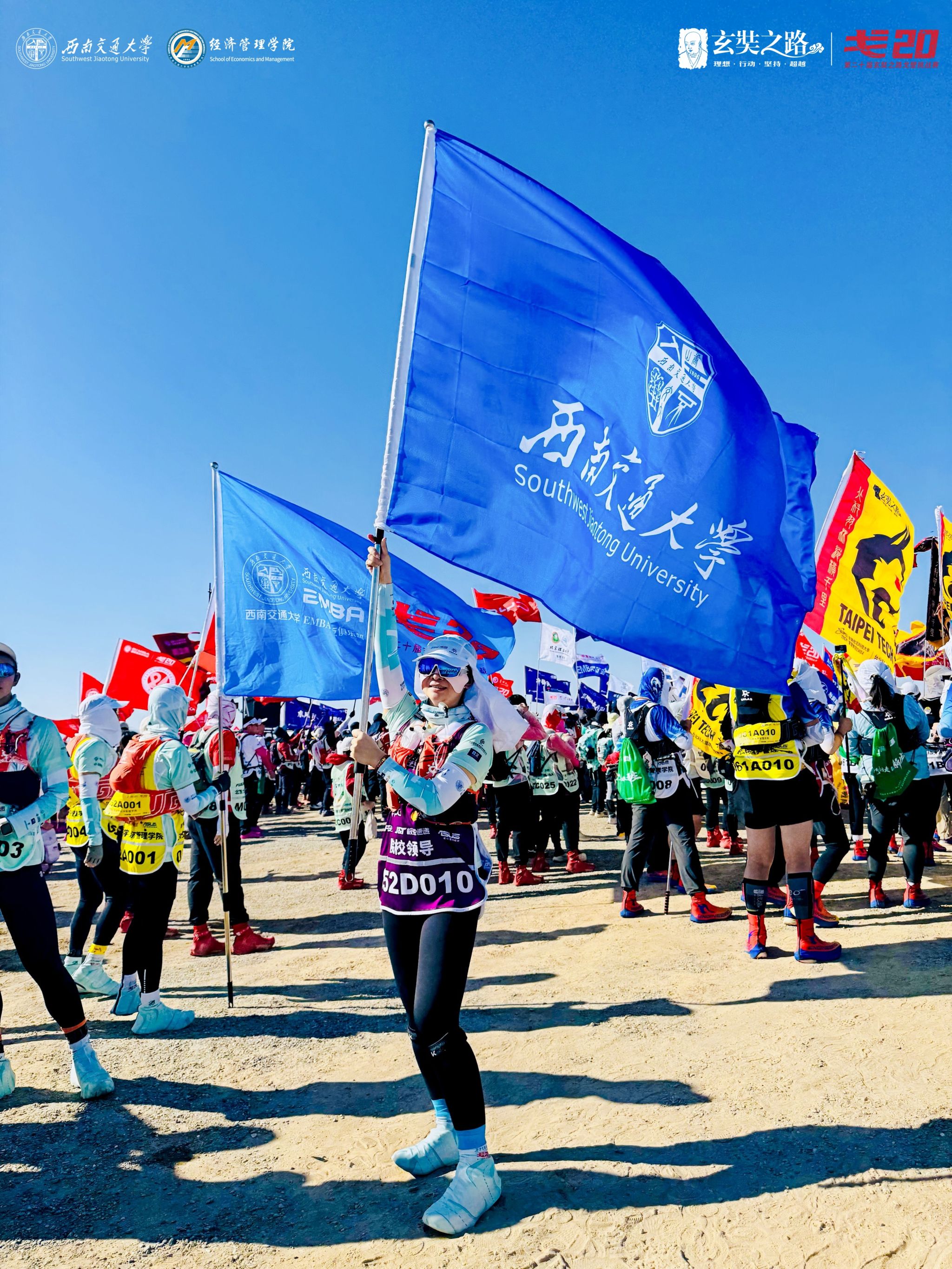 四天三夜,121公里。从阿育王寺到戈壁清泉,这不仅是地理的跨越,更是一场身体与意志的极限考验,一次精神与信念的朝圣之旅。在第二十届玄奘之路商学院戈壁挑战赛中,澳门十大信誉好的网站戈20战队在学校与学院的强力支持下,在澳门十大信誉好的网站党委书记蒋佳的全程陪伴与鼓舞下,全员安全完赛,载誉而归!