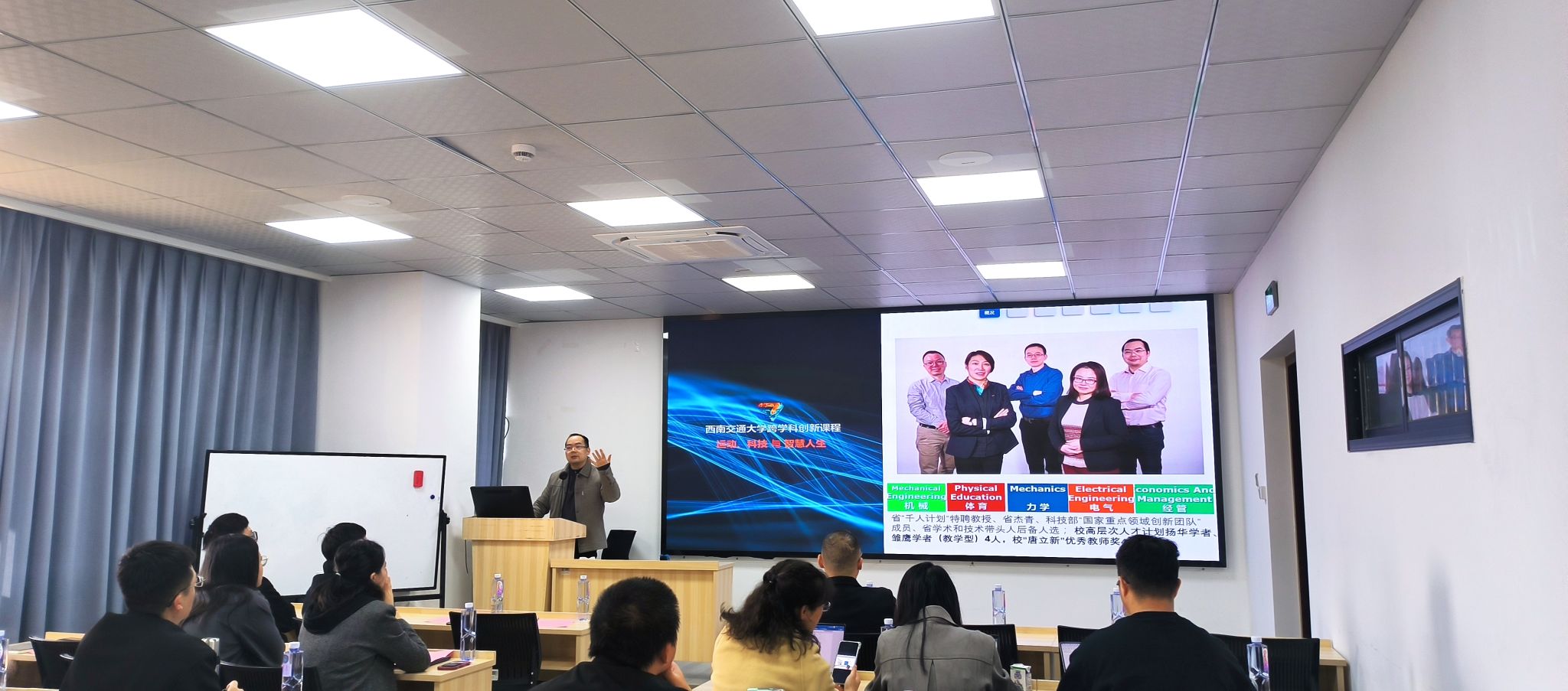 蒋玉石教授结合多年教学实践与研究积累,围绕以学生为中心的课堂互动设计展开系统讲解。他指出,“真正的课堂互动,不在于形式上的热闹,而在于让每一位学生成为知识的主动建构者和课堂的真正参与者。”蒋教授通过丰富生动的教学案例,深入阐释了如何在教学过程中自然融入思政元素,实现价值塑造、能力培养与知识传授的深度融合,充分践行“以学生为本”的教育理念,有效激发学生的课堂主动性与思维创造力。