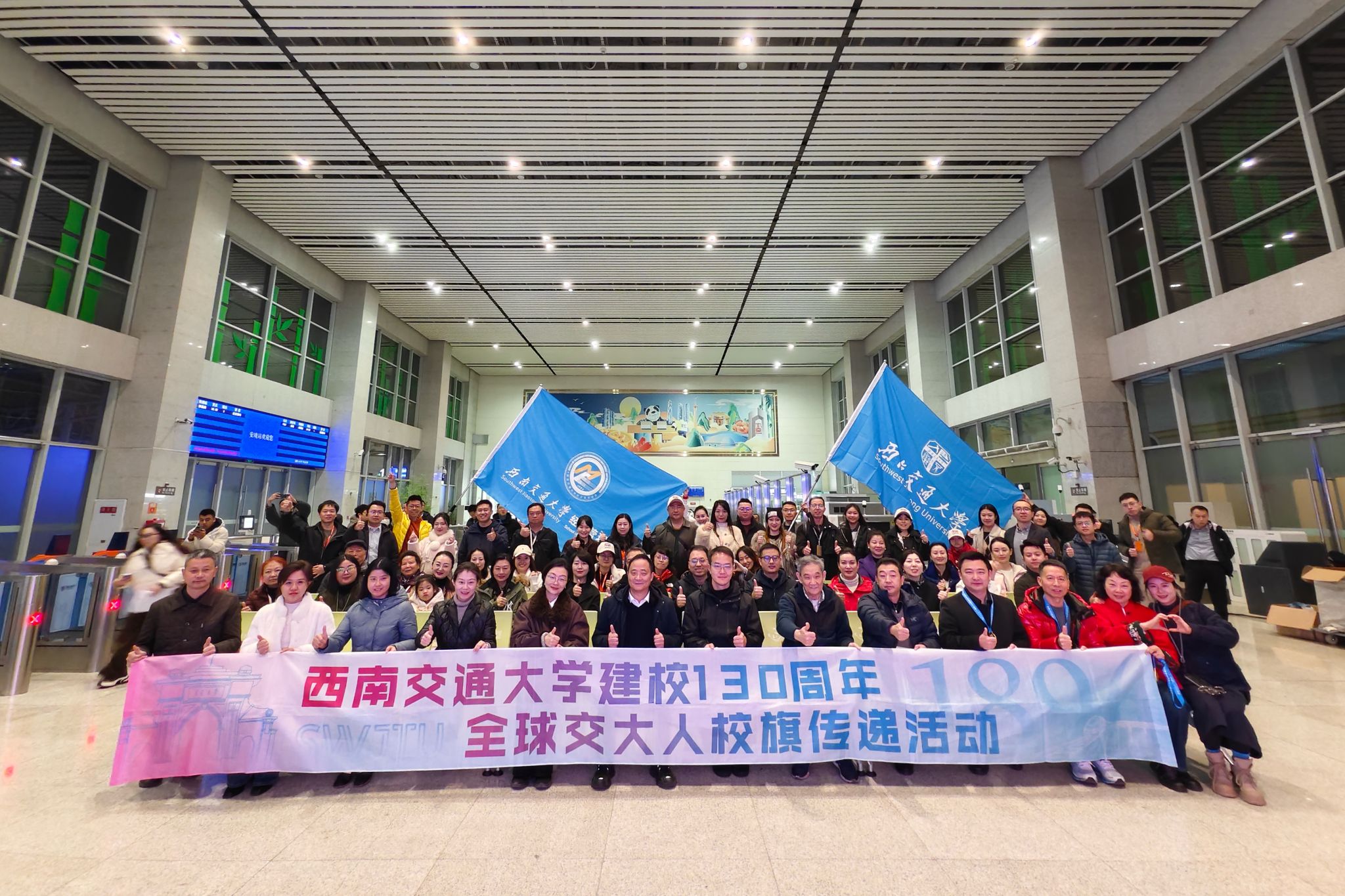 此次活动不仅是高校、铁路、文旅三方跨界融合的创新实践,更是一场具有深刻教育意义与时代内涵的文化传承行动。依托“安逸号”熊猫专列这一铁旅融合载体,校友们沿成昆铁路行进,先后走进成昆铁路展览馆、西昌卫星发射基地,深入邛海湿地、参与彝族文化体验,在行走中感悟历史,在交流中凝聚共识。活动特别设置建校130周年全球交大人校旗传递活动、“成昆线上话当年”微讲堂、共写《致母校的一封家书》等环节,让跨越时空的精神对接在情感共鸣中自然生发。