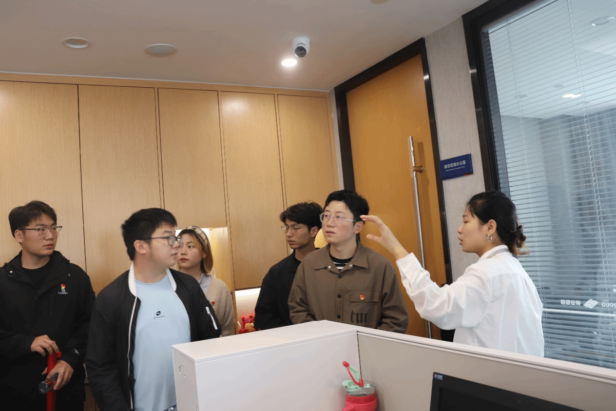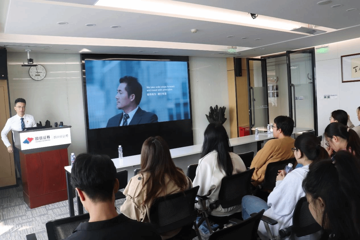 抵达后,国信证券的领导和工作人员热情接待,并对十大信誉官网师生的到来表示热烈欢迎。随后,大家在工作人员的带领下进入会议室落座,国信证券理财三部的周圆皓经理简要介绍了此次活动的流程,本次党建共建活动正式开始。