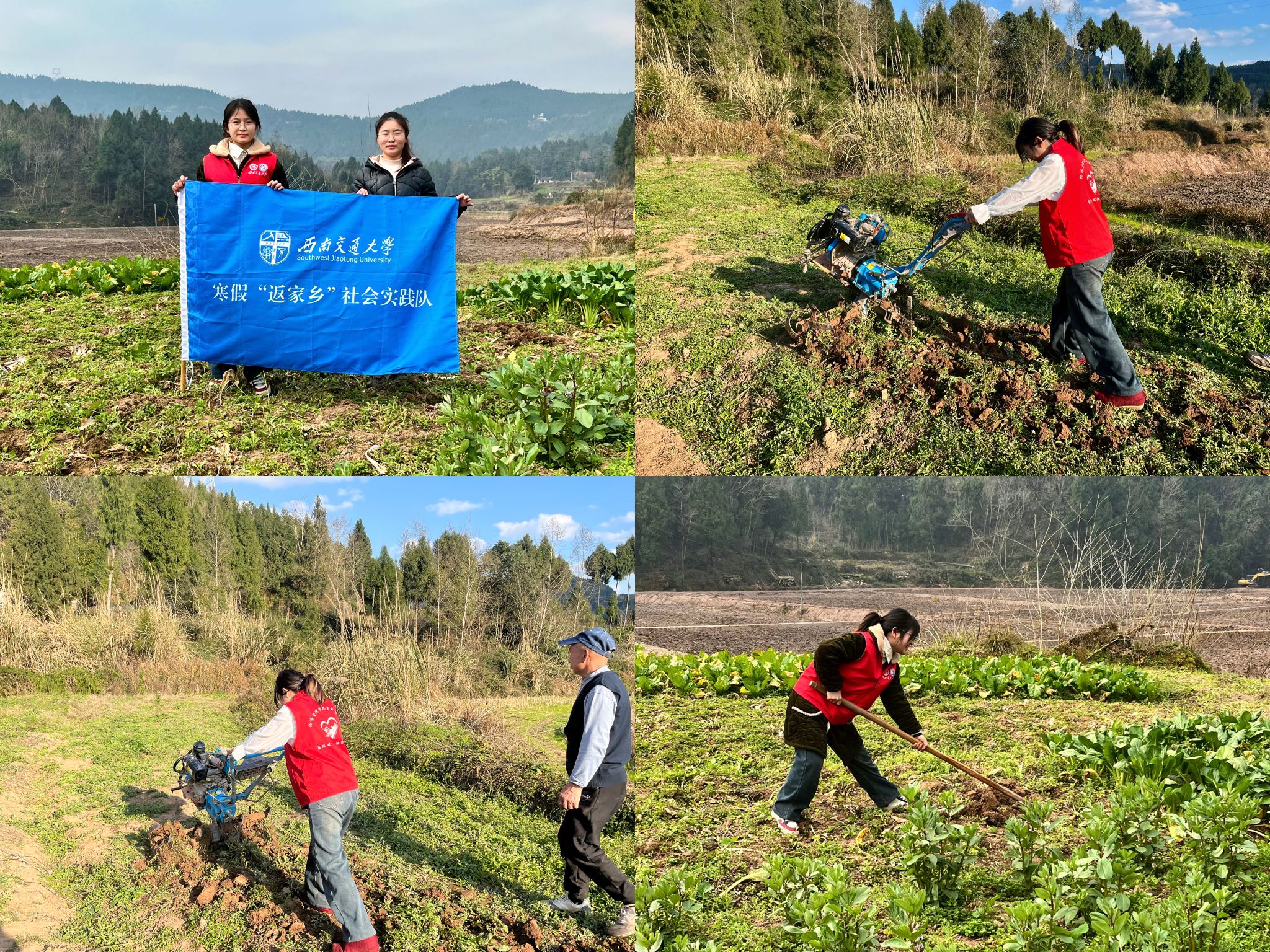 在推进乡村振兴和新型城镇化建设的背景下,为深入学习宣传贯彻党的二十大精神,使劳动教育在中华优秀传统文化的丰厚土壤中找到新的支点,1月17日至2月25日,澳门十大信誉好的网站辅导员张先凌、钟文婷带队赴四川南充、山东烟台开展“跟着节气去劳动”专项实践活动。实践队走进两地农村,分别与四川省仪陇县保平镇麻石垭村脱贫攻坚奔康产业园、山东省烟台市招远市梦芝街道、烟台市嘉合草莓园的工作人员进行交流,共同探讨农业劳动与节气的关系,以及如何将传统农业发展与现代生产相结合。实践队成员跟随当地劳动人民,融入田间劳作,亲身体验了农业劳作的艰辛。通过耕耘土地、学习施肥的技巧,实践队成员掌握了一系列实用的农业技能。