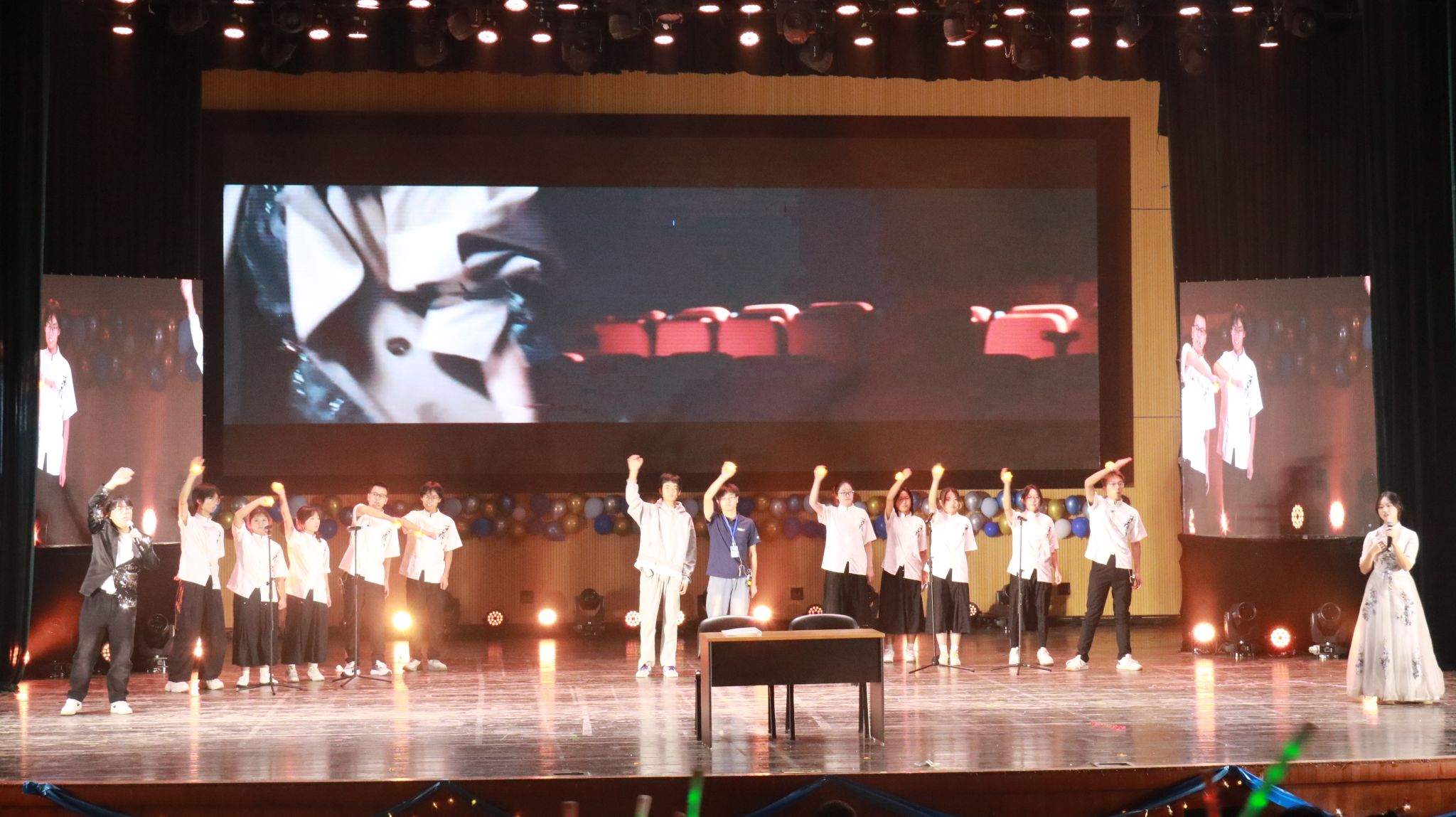 晚会在街舞协会活力四射的舞蹈表演《Hands Up》中开启。管理三班带来合唱《未离去,往前飞》,以熟悉的动画旋律唤起全场共鸣;管理一班则通过情景剧《从异乡,到吾乡》,生动演绎了外地学子融入成都生活的温暖历程;管理八班深情献唱《我们的明天》,传递出奔向未来的坚定信念;刘晓贝同学演绎的吕剧选段《搬窑-黄河乡音》,更以传统艺术的魅力惊艳四座。