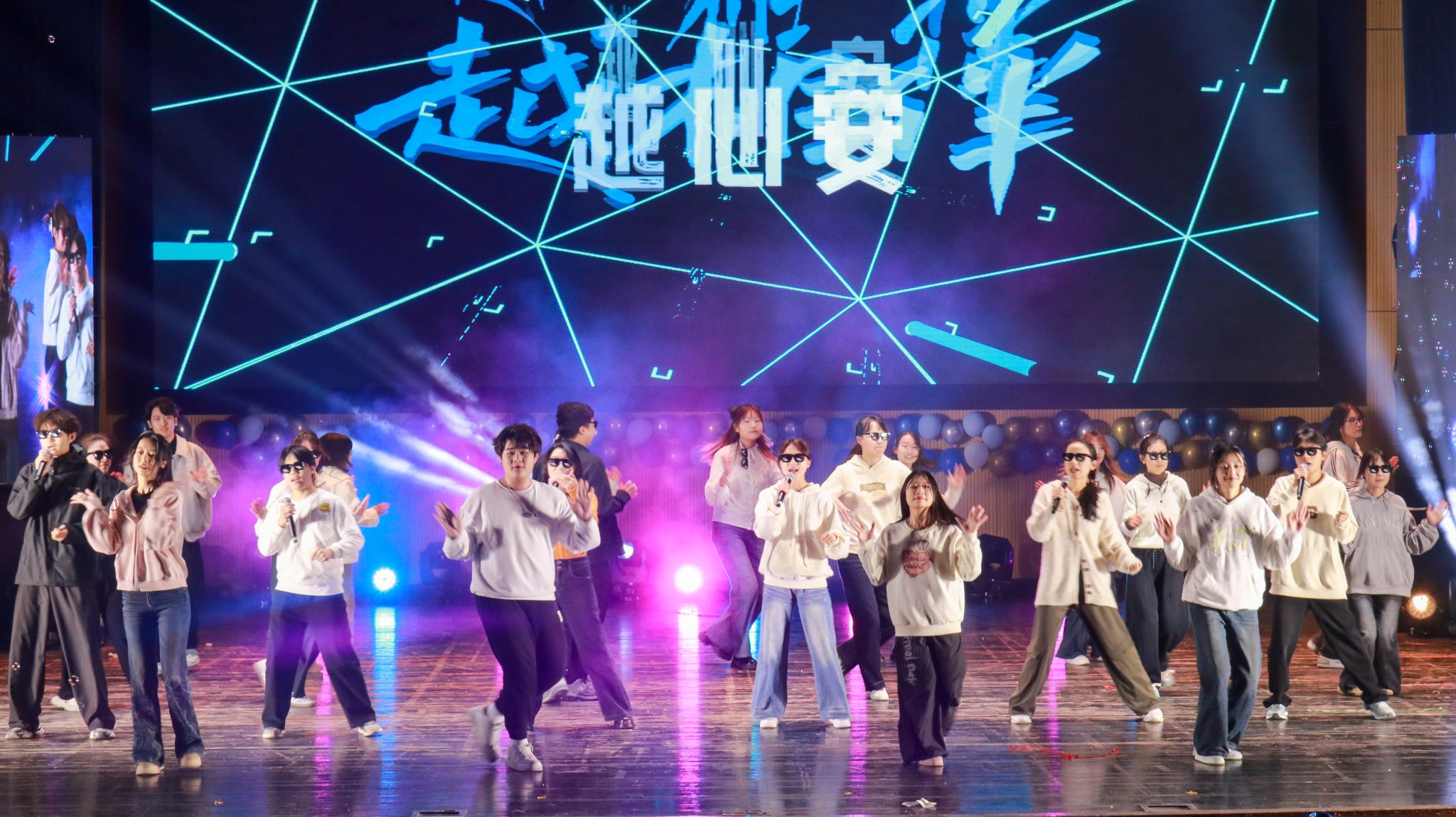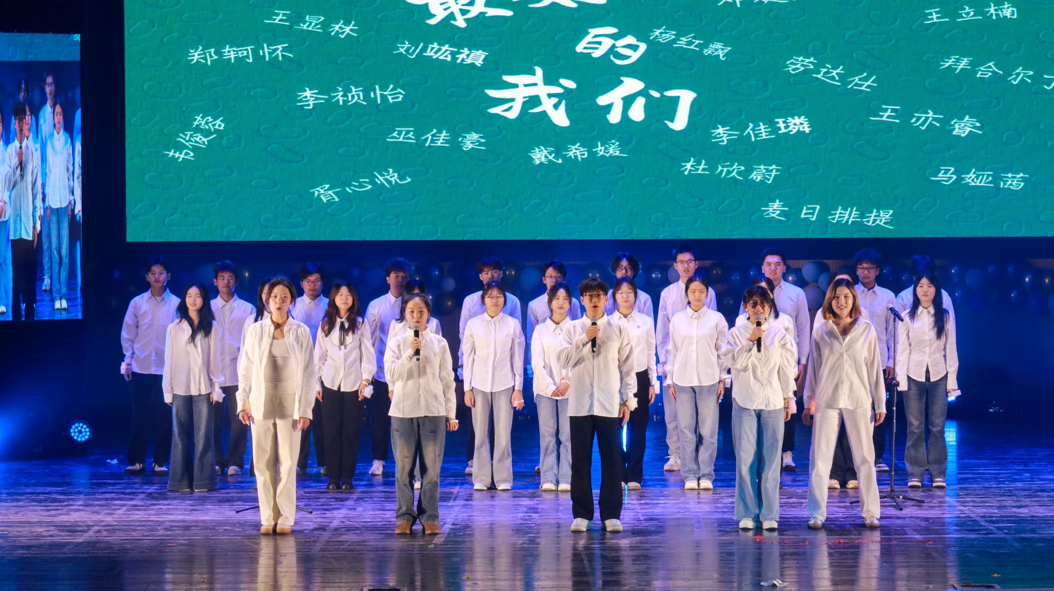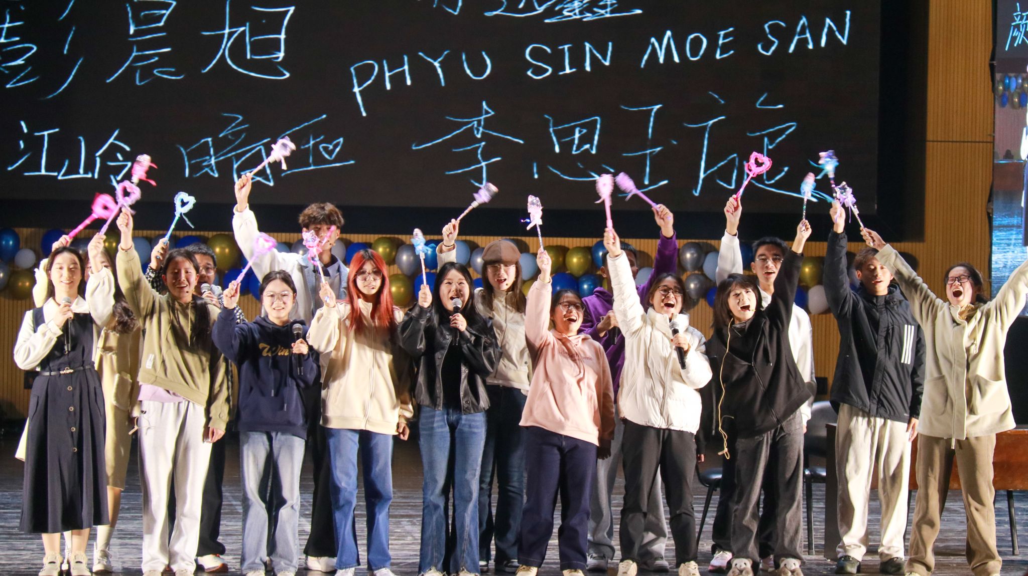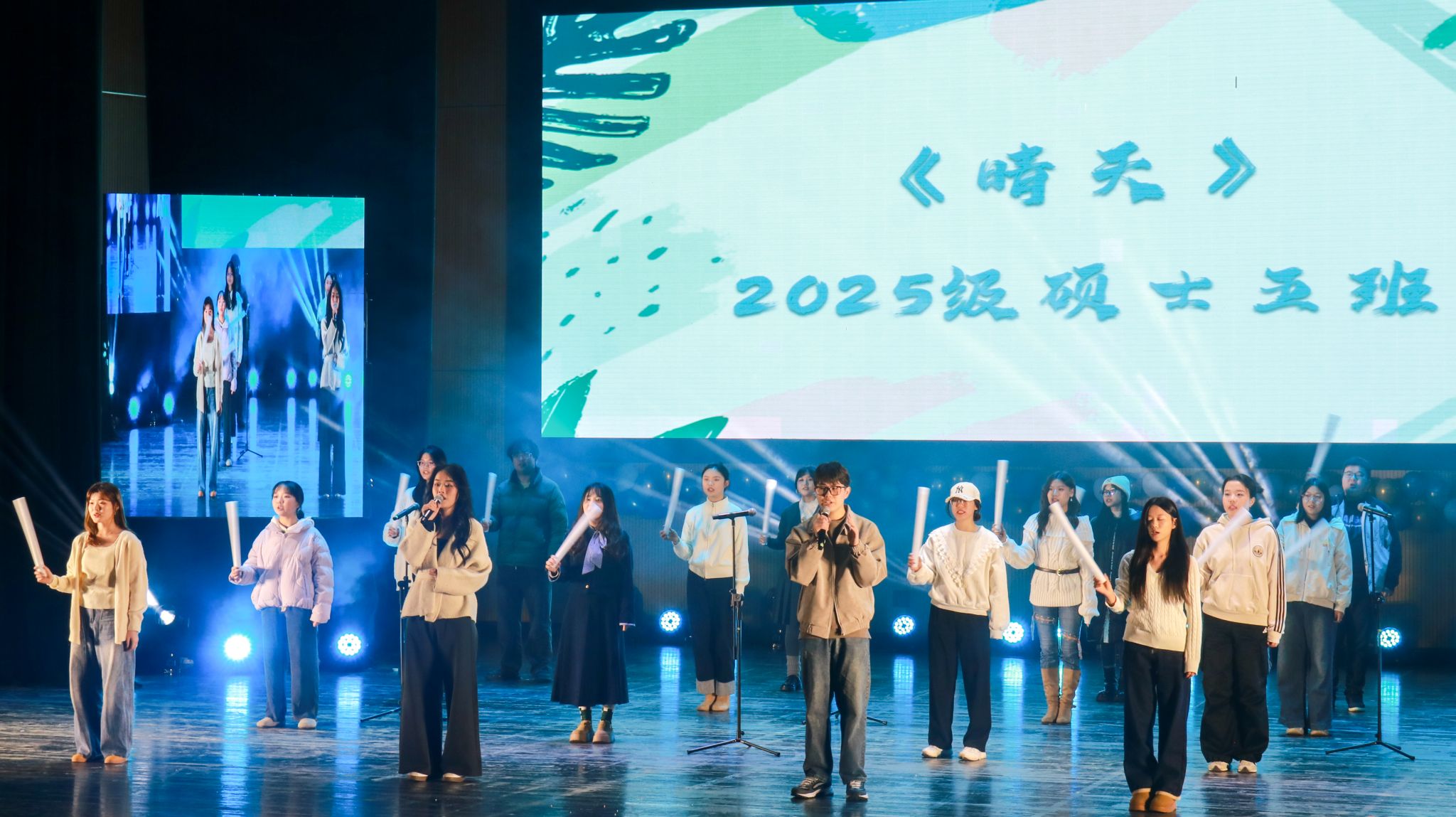 管理七班的《成都》用歌声诉说城市情怀;个人独唱《Baby》与乐器伴奏相得益彰;经贸三班以《同心花开》展现班级凝聚力;经贸四班的歌舞串烧《未来正cheer》活力十足;管理四班合唱《夜空中最亮的星》引发全场星光互动;扬音音乐社乐队表演《飞云之下》磅礴大气;硕士六班一曲《我爱你中国》演唱抒发了深沉的家国情怀。最后,朋辈导师与辅导员老师们共同献上的歌舞节目《青春护航联盟——启航吧,新同学!》,将晚会温情氛围推向顶点。晚会还穿插互动感十足的抽奖环节,气氛热烈而温暖。