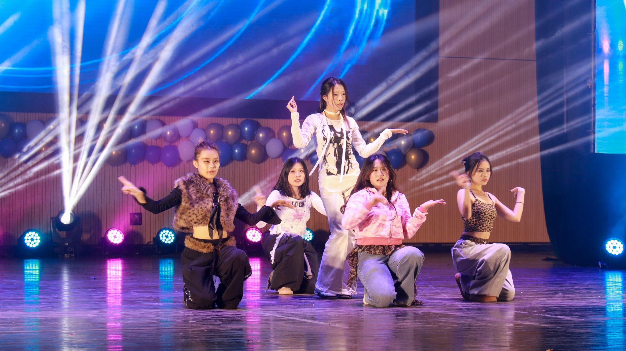 硕士5班的《晴天》、经贸5班的《稻香》等歌曲联唱,以经典旋律串联青春记忆;管理五班与经贸一班联合呈现创意小品《甄嬛传之内卷风波》,诙谐探讨校园生活中的成长课题;经贸二班带来舞蹈《大家一起喜洋洋》,活泼可爱的舞步唤起全场童年回忆;魔术协会的《千术迷局》悬念迭起,引人入胜。
