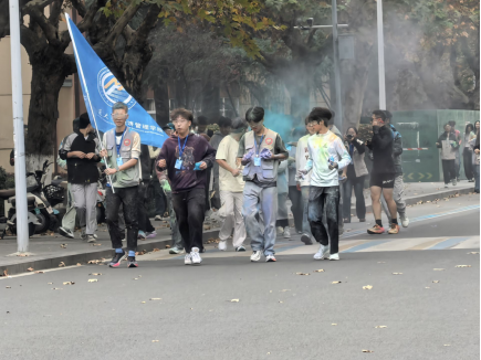 3.3公里的赛道串联起校园标志性点位,参与者们领取彩色粉末相互喷洒,衣服被染成斑斓的色彩,奔跑的身影与纷飞的彩粉交织成青春的画卷。活动全程不设竞技压力,参与者跑完一圈后可自由选择续跑或在休息点放松,护目镜佩戴等安全提醒也贯穿始终,让趣味与安心兼具,更在互助互动中践行“同心协力,砥砺前行”的精神。