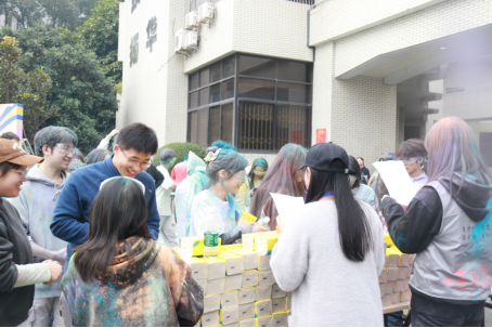 活动前的创作环节中,学院提前备好护目镜、彩色粉末等装备,参与者们在创作区手绘专属创意图案,让每一件奔跑“战衣”都成为个性标识。