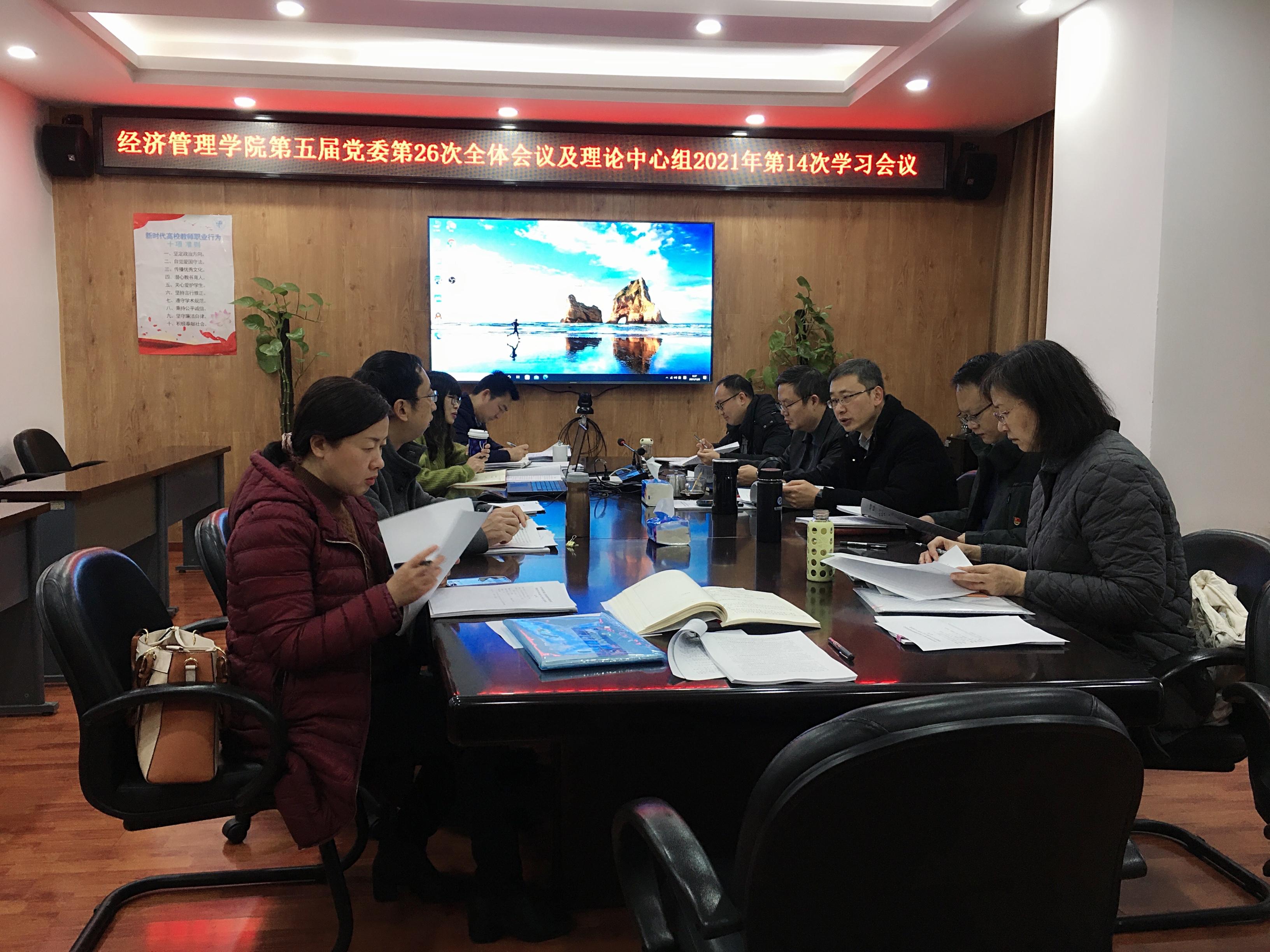 2021年12月8日上午8:30,澳门十大信誉好的网站第五届党委在九里校区零号楼0607会议室召开了第26次全体会议,并进行了2021年第14次理论学习中心组学习。会议和学习由学院党委书记王斌主持,学校党委组织部陈燕灵老师列席了会议。