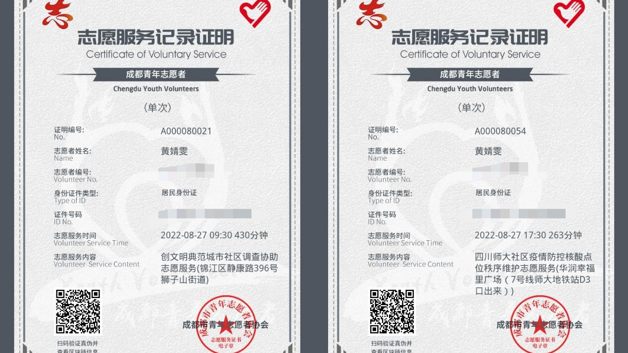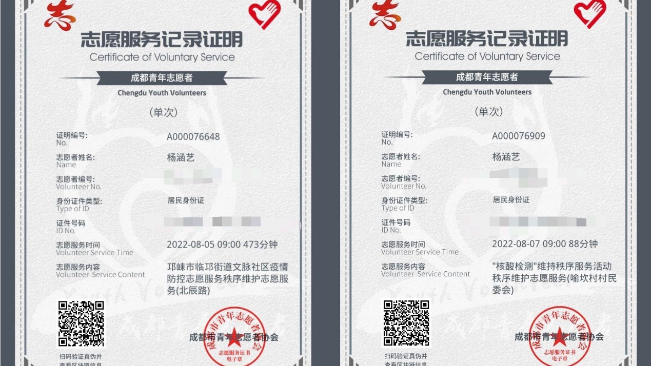 参加家乡社区核酸检测志愿者培训、维持核酸秩序、贴检测试管上的二维码 |