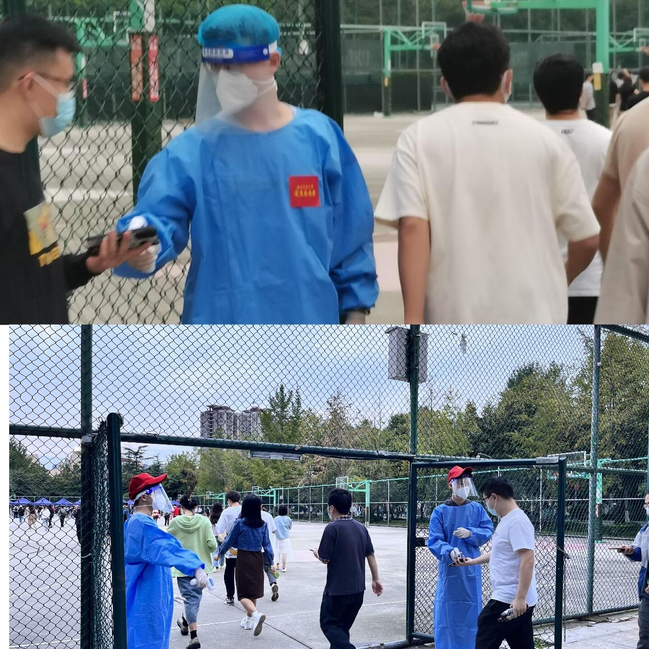 扫码、录入信息、协助医务工作者完成核酸检测,这是党支部党员陈建奇、尹玉萌同志在澳门十大信誉好的网站九里校区的抗疫日常。穿上防护服、打开手机便开始了一天的工作,冗长的核酸队伍,无法停歇的重复扫码,汗水浸湿了衣服,但是,一句“感谢”带来的心满意足和盼望疫情早日消散、重现烟火交大的信念让他们认认真真、毫无怨言。