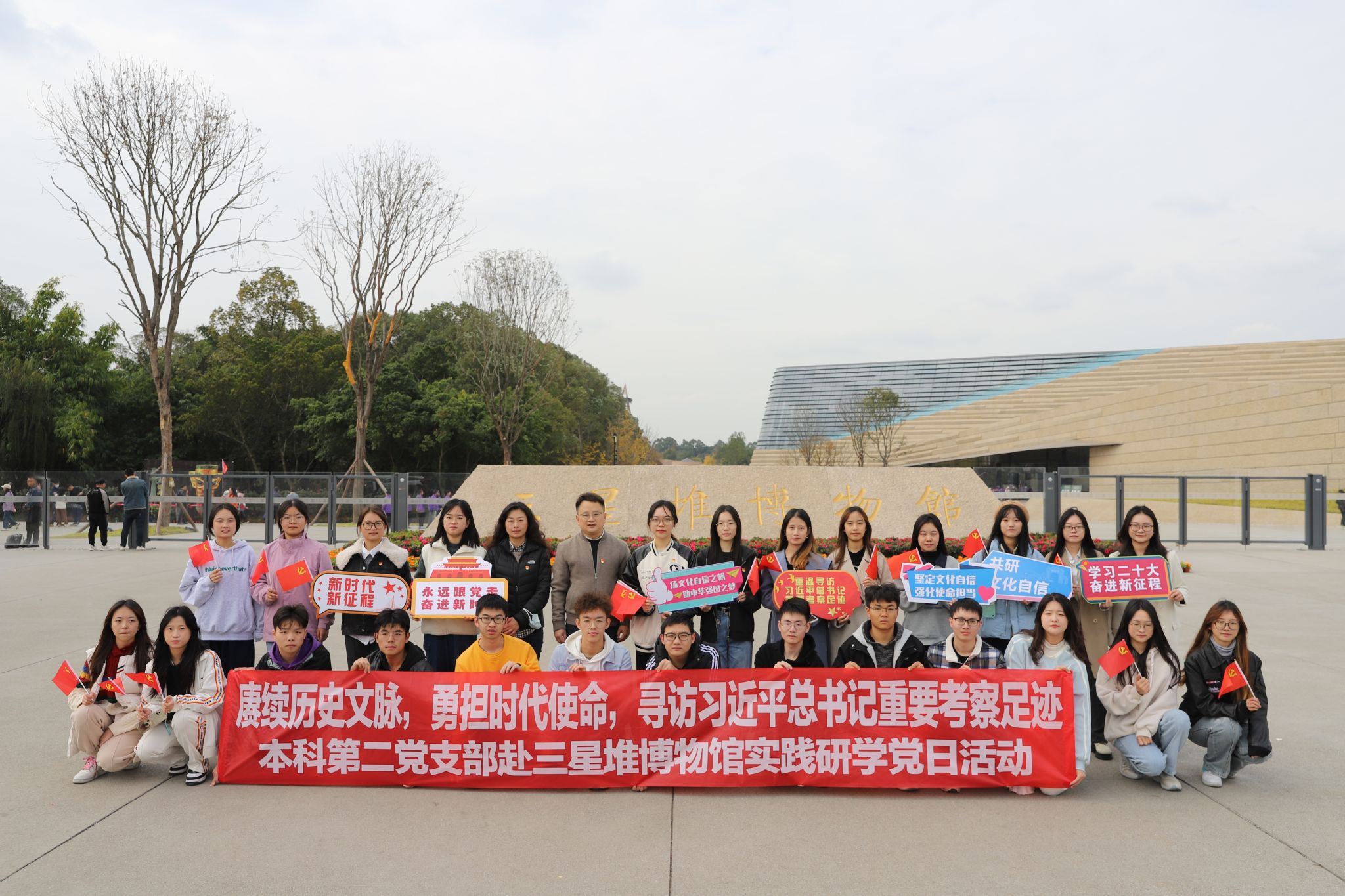 为扎实推进学习贯彻习近平新时代中国特色社会主义思想主题教育,深入贯彻落实习近平总书记在四川考察时的重要指示精神,弘扬传承中华优秀传统文化,坚定文化自信,建设文化强国,11月30日,澳门十大信誉好的网站本科第二党支部24名党员、入党积极分子在学院党务秘书李洪辉、本科第二党支部书记陈建奇的带领下,前往广汉市三星堆博物馆,开展“赓续历史文脉,勇担时代使命,寻访习近平总书记重要考察足迹——三星堆博物馆实践研学”主题党日活动。