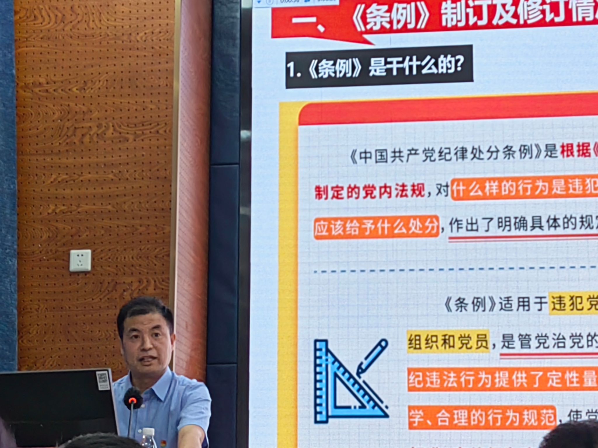 此次学习内容邀请学校纪委张国正副书记进行专题导学。张国正从《中国共产党纪律处分条例》制订及修订情况展开,重点介绍了此次修订的主要内容,并结合案例详细解读了与高校师生工作生活紧密相关的易违反的条款。