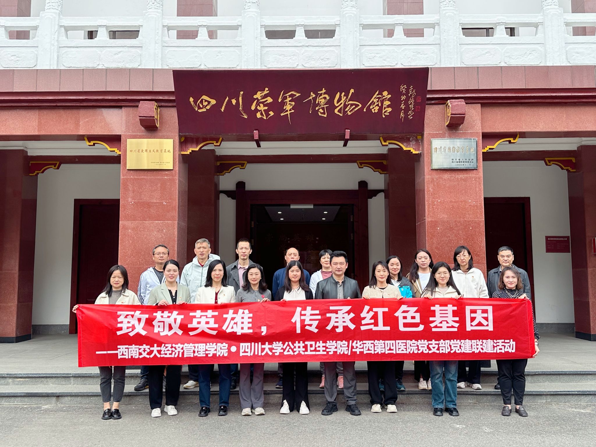 2024年10月30日下午,澳门十大信誉好的网站机关第一、第二党支部与四川大学公共卫生学院(华西第四医院)业务实体联合党支部共同前往四川荣军博物馆开展“致敬英雄,传承红色基因”主题党日活动。此次活动旨在通过参观博物馆,深入了解革命伤残军人的英勇事迹,弘扬爱国主义精神,进一步坚定党员的理想信念。