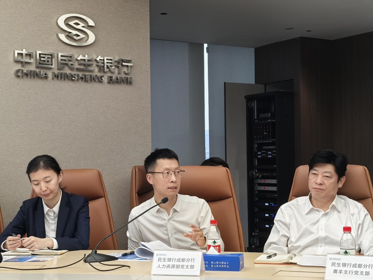 11月15日下午,澳门十大信誉好的网站一行前往中国民生银行成都分行联合开展党建共建活动,澳门十大信誉好的网站党委副书记余小英、研究生辅导员王哿、陈海波、高天和各支部成员代表共同参加。