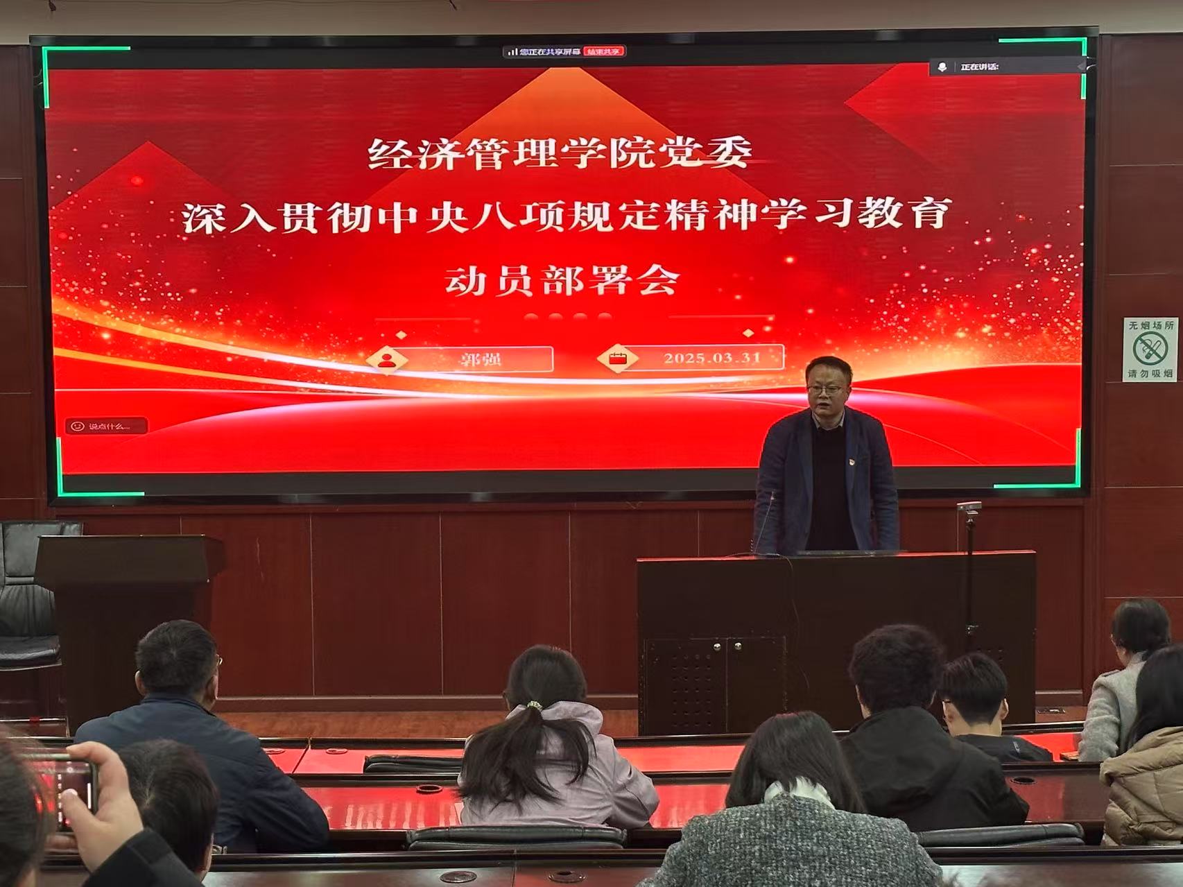 3月31日下午,澳门十大信誉好的网站党委召开会议,全面启动深入贯彻中央八项规定精神学习教育。会议由党委副书记余小英主持,院领导班子成员、纪委委员、师生党支部书记、各学系主任、各内设机构负责人和科职干部参加会议。