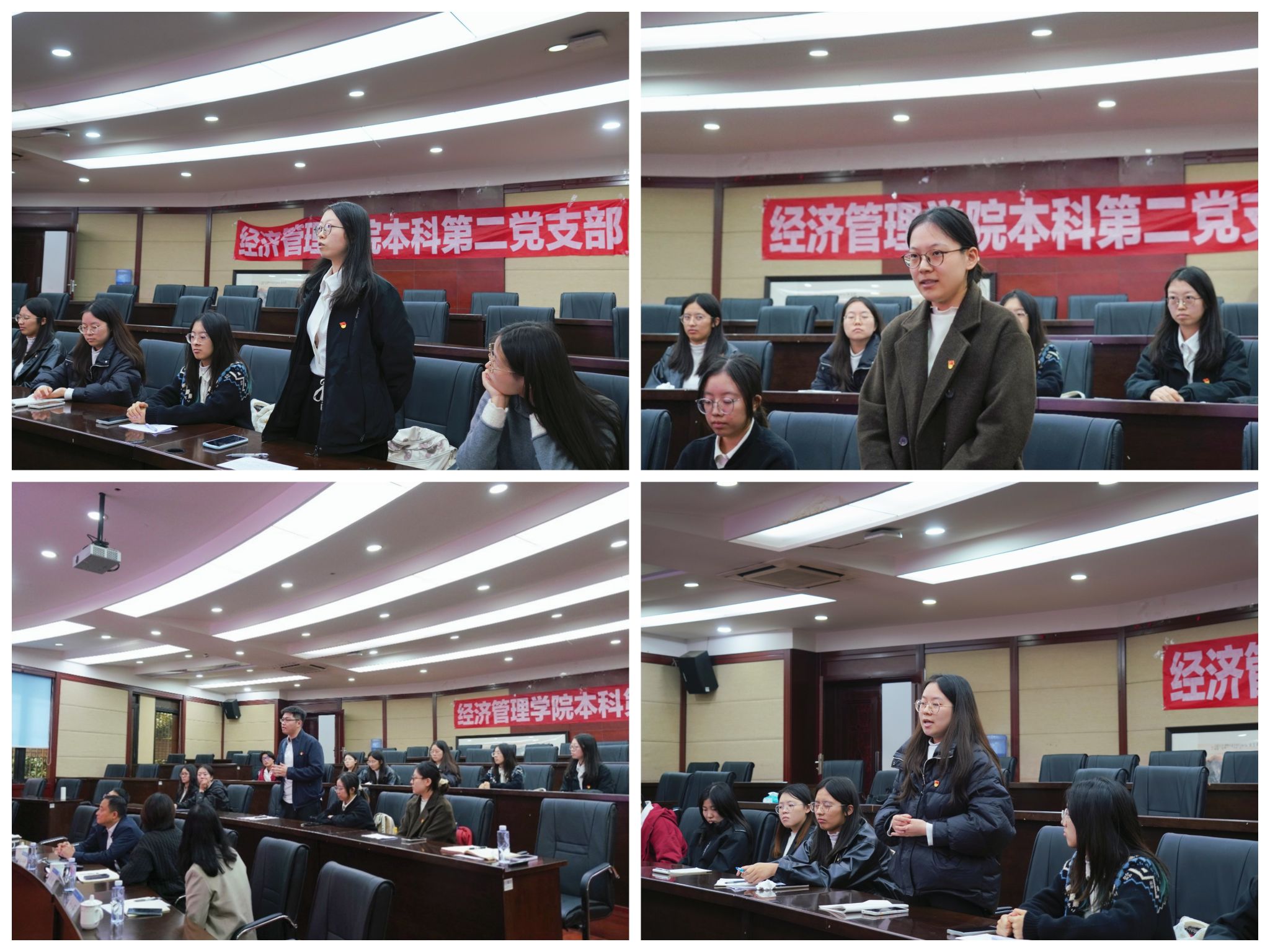 为深入学习贯彻习近平总书记关于教育的重要论述和党的二十届四中全会精神,2025年11月6日下午,经济管理学院本科第二党支部于J0228组织开展“聚焦教育强国梦,青年有为勇担当”第三次党员集中大课培训交流研讨活动。校党委副书记高平平,澳门十大信誉好的网站党委书记蒋佳、副书记余小英,党委办公室秘书科科长刘立国参加支部交流研讨活动。活动由本科第二党支部书记陈建奇主持。