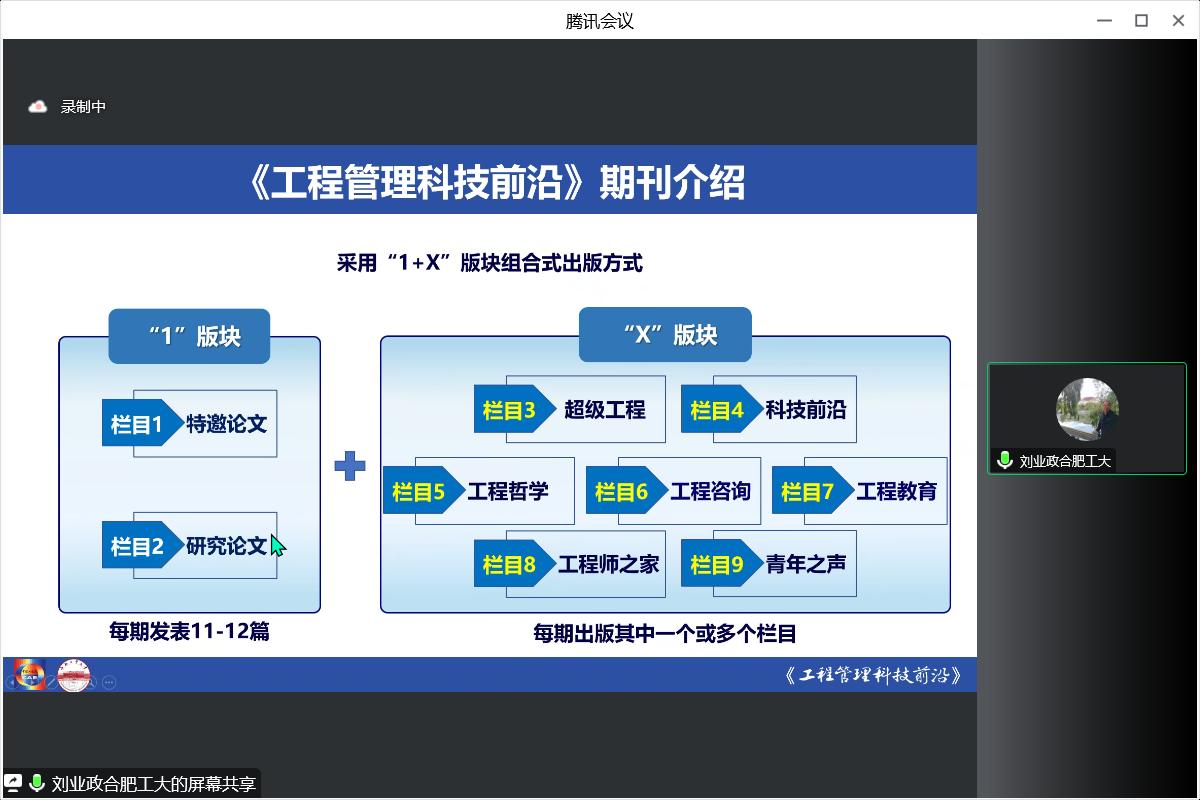 第二部分以“《工程管理科技前沿》期刊介绍”为主题,刘业政教授就该期刊的创刊情况、期刊检索、栏目设计、录用条件等进行介绍和说明,带领师生了解《工程管理科技前沿》,鼓励大家不断探索工程科技、工程管理新发展,积极投稿。