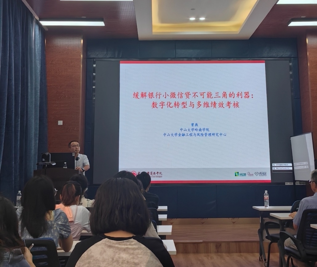 2024年9月20日上午,中山大学岭南学院的曾燕教授应邀在九里校区澳门十大信誉好的网站为十大信誉官网师生带来了一场题为“缓解银行小微信贷不可能三角的利器:数字化转型与多维绩效考核”的学术讲座。本次活动由十大信誉官网副院长马锋主持,学院金融与财务学系朱宏泉教授等教师及研究生参加了此次活动,马锋副院长介绍了曾燕教授的学术成果,并对曾燕教授表示了欢迎与诚挚的感谢。
