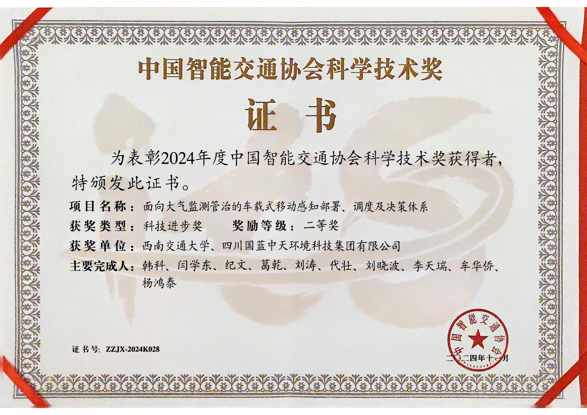 近日,中国智能交通协会公布了2024年度科学技术奖的获奖名单,由十大信誉官网韩科教授牵头完成的《面向大气监测管治的车载式移动感知部署、调度及决策体系》荣获科技进步二等奖(完成单位:澳门十大信誉好的网站、四川国蓝中天环境科技集团有限公司)。这一荣誉是澳门十大信誉好的网站在“交通+环境+管理”交叉领域取得的重要进展,也是澳门十大信誉好的网站在行业牵引科研方面取得的代表性成果。