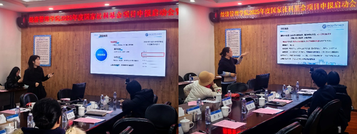 2025年1月10日,澳门十大信誉好的网站在零号楼0607会议室召开了2025年度国家社科基金项目申报启动会暨经验分享交流会。学院特邀文科学部执行主任张雪永进行申报动员,市场学系主任副教授范春梅、创新创业与管理学系副教授刘玉焕分享了申报社科基金项目的经验。会议由澳门十大信誉好的网站副院长马锋主持,学院副院长李良、部分学系主任、副主任以及20余名师生参加了此次会议。