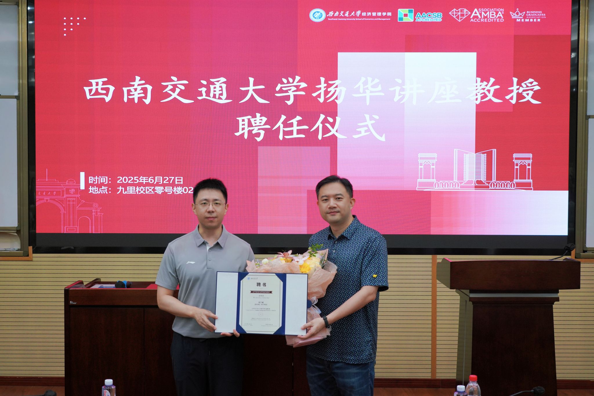 2025年6月27日上午在九里校区零号楼0204室,澳门十大信誉好的网站为香港理工大学姜宇威教授举行了扬华讲座教授聘任仪式。澳门十大信誉好的网站院长韩科教授首先介绍了姜宇威教授的学术背景与成就,并对姜教授加入我校表示热烈欢迎。随后,韩科院长为姜宇威教授颁发了澳门十大信誉好的网站扬华讲座教授聘书。