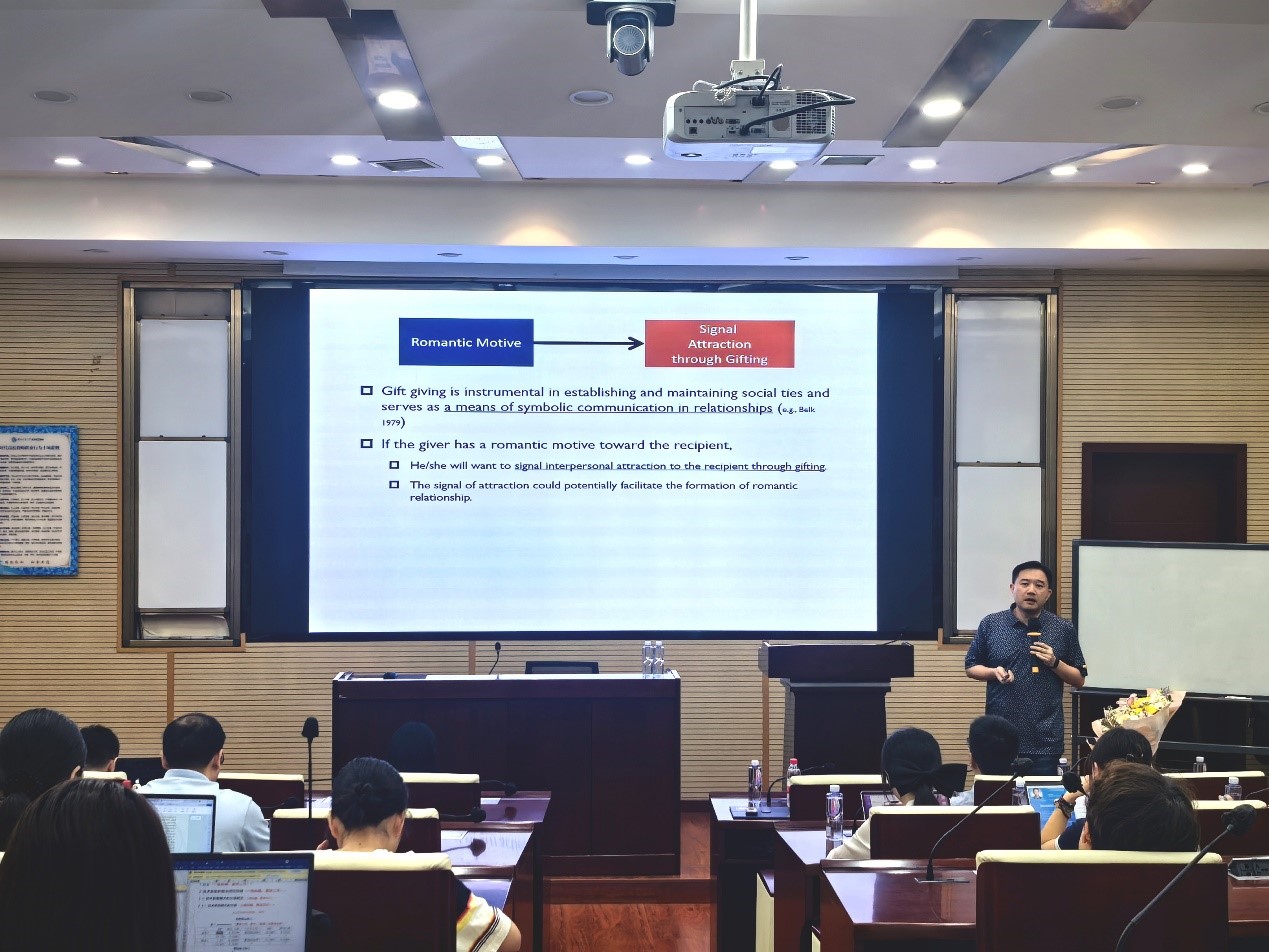 聘任仪式结束后,姜宇威教授应邀为十大信誉官网师生开展题为“Romantic Gifting ”的讲座,深入探讨在亲密关系中赠礼情境下对性别化产品偏好的问题。讲座由十大信誉官网市场学系主任范春梅副教授主持。