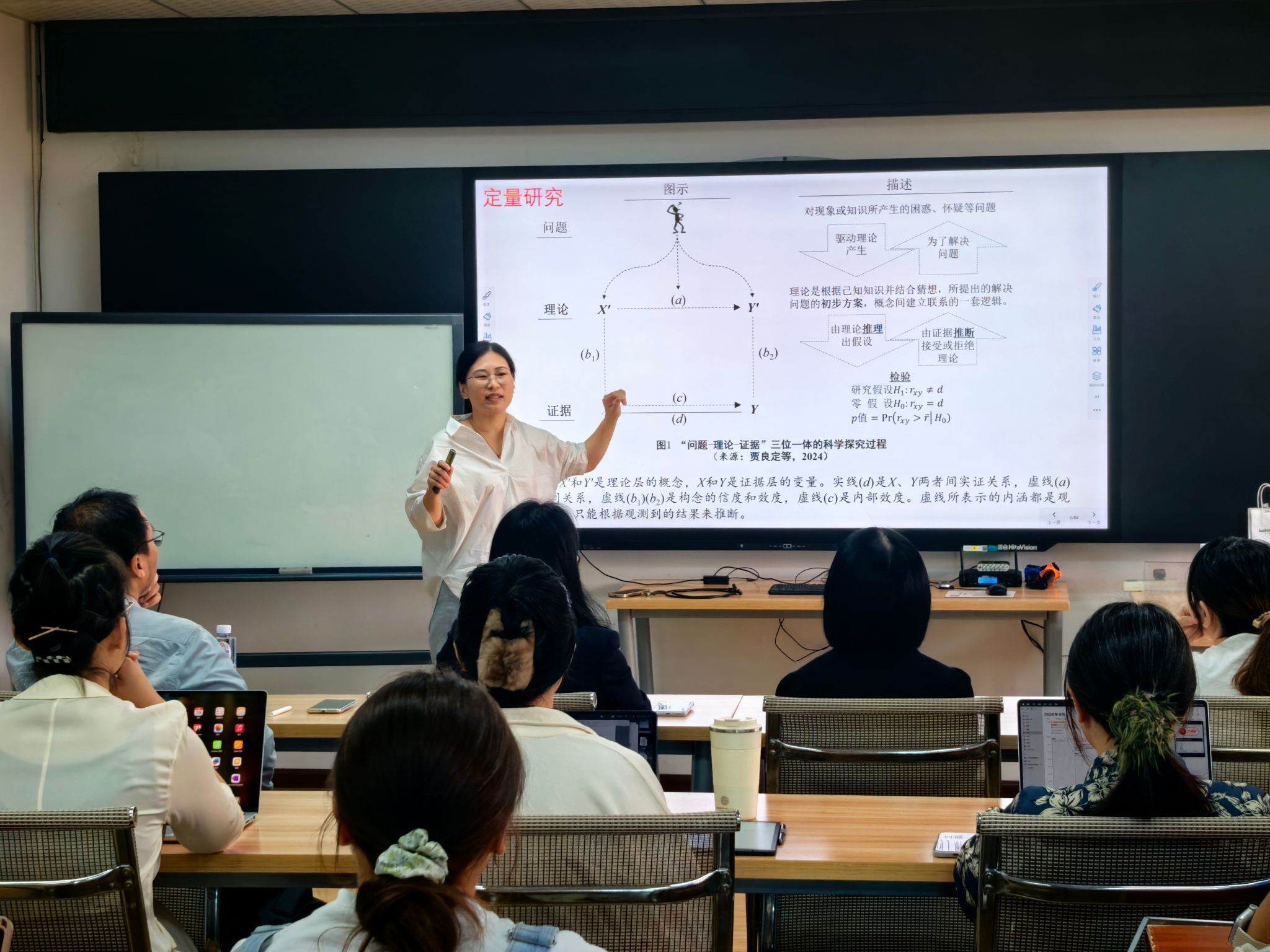 随后,卢老师结合其在《Academy of Management Journal》和《管理世界》上发表的三篇案例研究文章,分享了自己在案例调研、数据分析和理论构建方面的宝贵经验。她首先讲解了案例研究的调研过程,特别强调了如何通过细致的企业实地考察和访谈,收集真实、全面的数据,并应详细公开数据来源。卢老师提到,案例研究不仅仅是对单一现象的描述,更需要通过多维度的观察,捕捉到企业在具体情境下的复杂性和动态变化。在数据分析方面,卢老师详细介绍了她如何采用定性与定量相结合的分析方法,确保研究结果的可靠性和深度。她特别指出,案例研究中数据的分析不仅仅是为了得出结论,更是理论构建的核心步骤。通过严谨的数据分析,研究者能够从大量的案例中提炼出普遍性的管理原理,并对现有理论进行验证和创新。在理论构建的过程中,卢老师强调了理论建构与实践反馈的重要性。她通过自身的研究经验,说明了如何将企业实践中的实际问题转化为研究命题,并在理论中找到对策和解答。卢老师还特别指出,理论构建应当具有跨学科视角,借鉴多领域的理论框架,才能够真正对中国企业的管理实践提供指导。