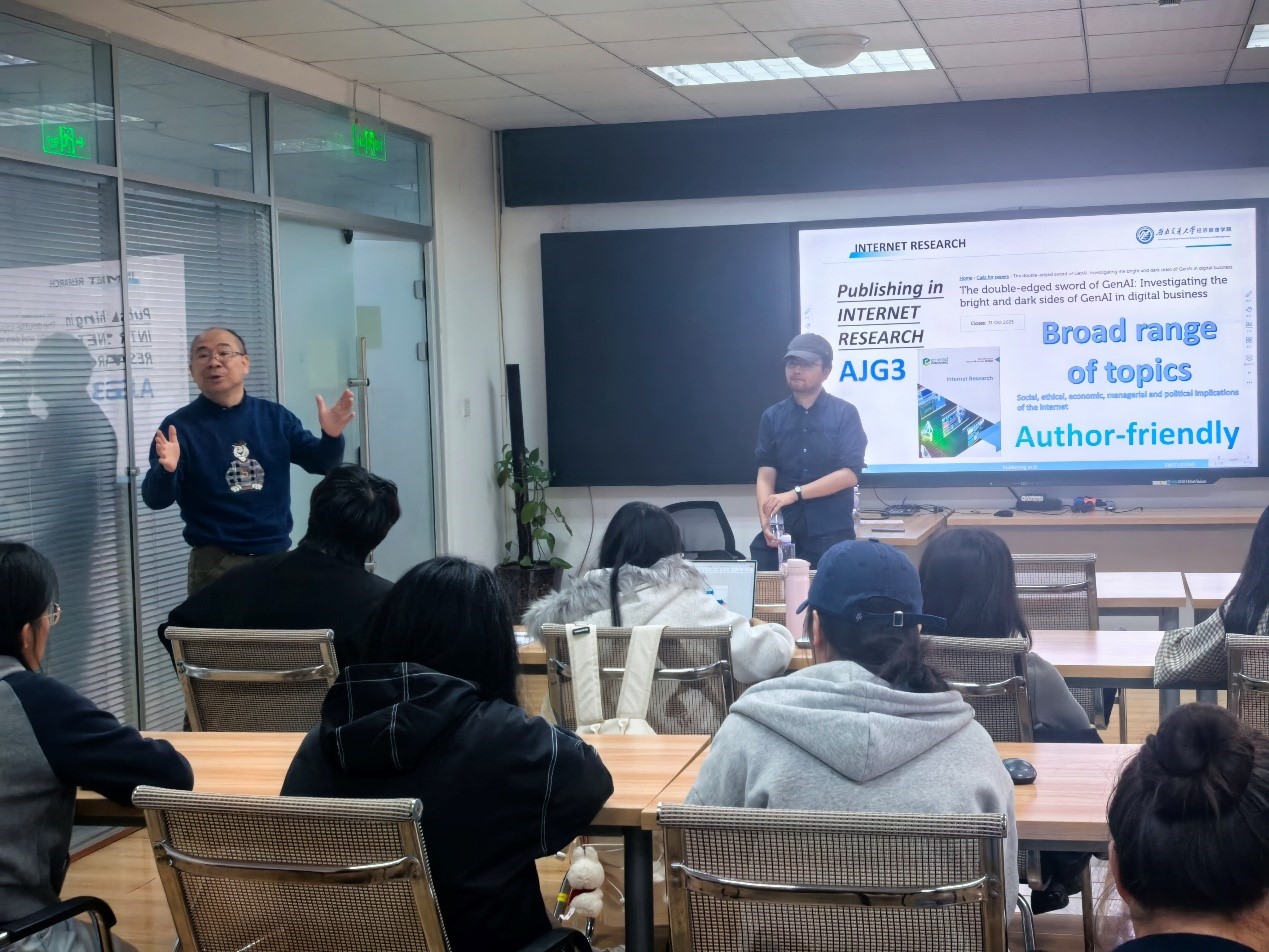 问答环节中,师生围绕研究方法应用、期刊投稿技巧、数字平台研究热点等问题深入交流,两位老师逐一细致解答。