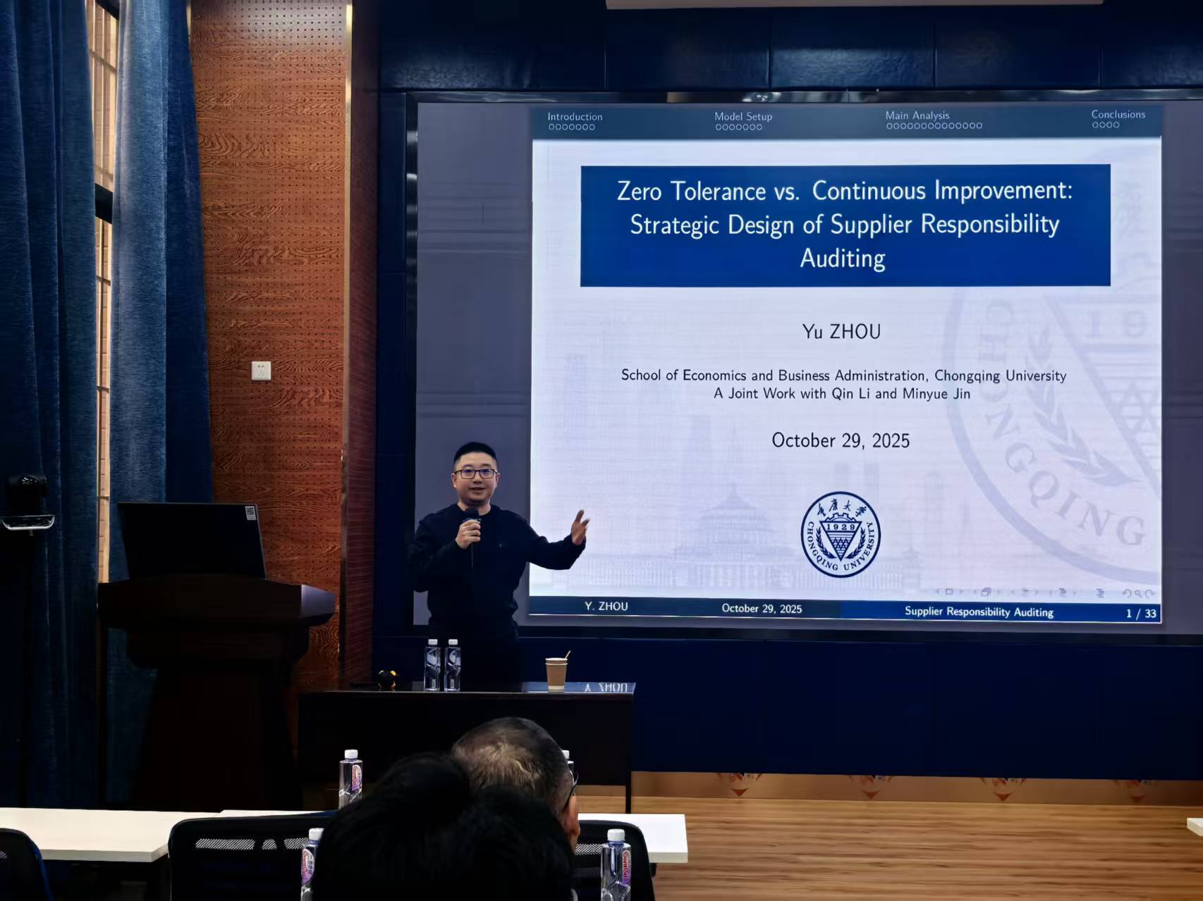 2025年10月31日上午,重庆大学经济与工商管理学院周宇教授应邀在九里校区零号楼0218室为十大信誉官网师生作题为“Zero Tolerance vs. Continuous Improvement: Strategic Design of Supplier Responsibility Auditing”的学术讲座。本次讲座由学院副院长聂佳佳教授主持,学院多位教师及学生参与此次活动。