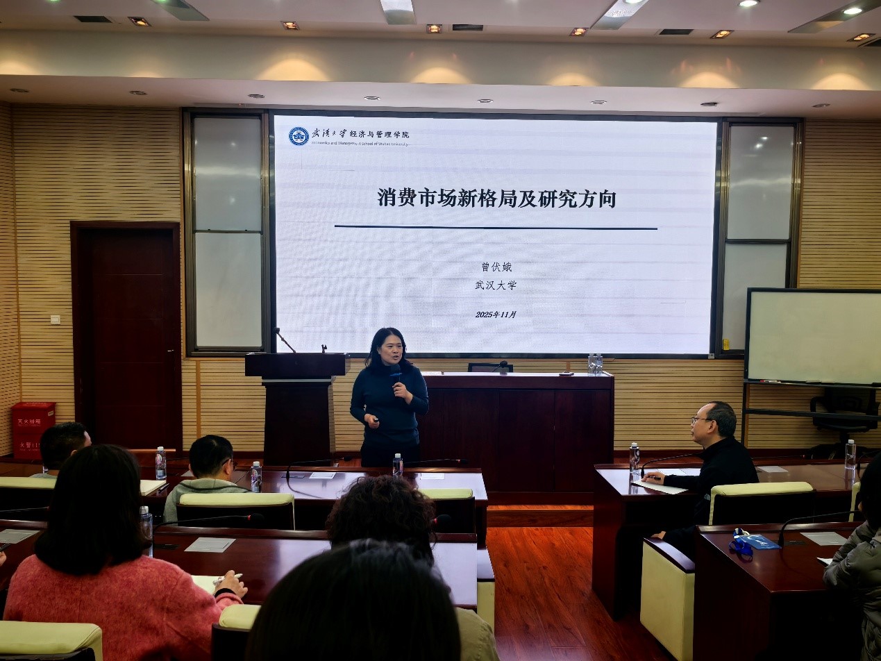 2025年11月9日下午,澳门十大信誉好的网站“创源大讲堂”之“经世致用 雅集新篇”校外学者系列讲座,于九里校区零号楼0212室圆满举办。此次讲座由武汉大学经济与管理学院曾伏娥教授主讲,讲座题为:“消费市场新格局及研究方向”。十大信誉官网副院长李良教授主持本次讲座,学院师生踊跃参与。