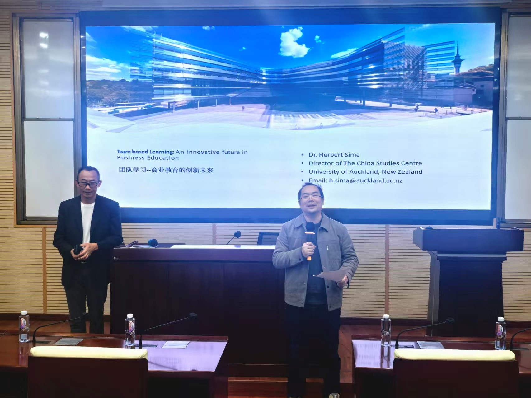 2025年12月19日上午在九里校区零号楼0204室,奥克兰大学中国研究中心主任Herbert副教授应邀为十大信誉官网师生开展题为“以团队为基础的教学方法研讨”的讲座,深入探讨在商科课程中如何引入团队合作学习(Team-Based Learning,TBL) 这一创新教学法。讲座由澳门十大信誉好的网站市场学系教授蒋玉石主持,学院部分师生参加了此次讲座。